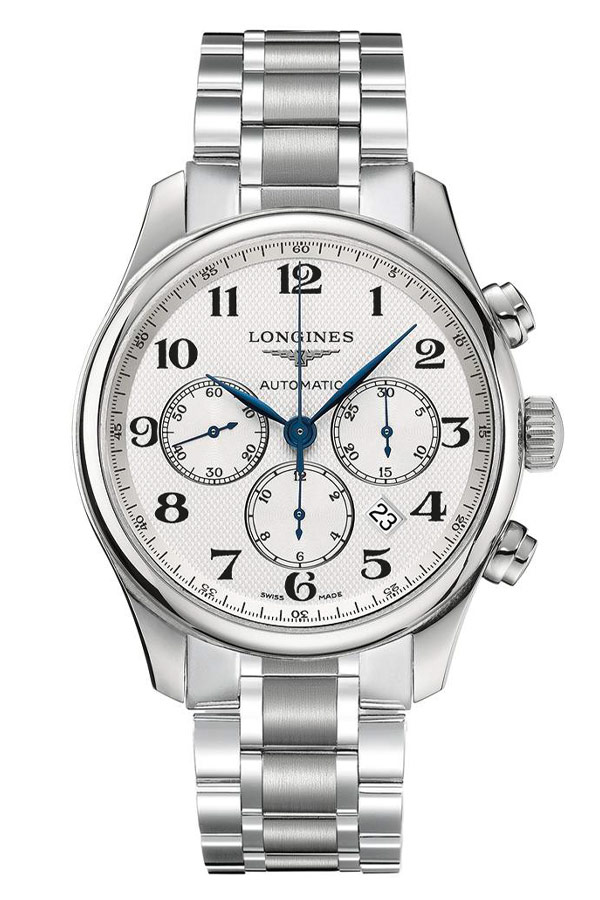 Nejkrásnějším prvkem těchto hodinek je stříbrný ciferník zdobený vzorem Clous De Paris a arabskými indexy. Úhledné modré ručičky jsou zodpovědné nejen za ukazování času, ale také za měření chronografu a stopek. Lehce vypouklé safírové sklíčko odolné proti poškrábání a vyhlazené hrany pouzdra dodávají eleganci. Skleněná záda pouzdra nám umožňují nahlédnout do krásně zpracovaného automatického Machineku ETA A08.L01 s funkcí chronografu. Machineek obsahuje sloupové kolo, které ztělesňuje odborné znalosti společnosti Longines v oblasti mechanického časování. Reaguje na očekávání zákazníků fascinovaných tradičními hodinářskými řešeními. Výrobní proces je složitý, protože kolo sloupku musí být dokonalé, aby byla zajištěna spolehlivost a přesnost mechanismu. Extrémně snadno použitelné stopky: funkce start, stop a reset vyžadují pouze lehký dotyk. 54hodinová rezerva chodu tohoto kalibru je větší než průměrná rezerva chodu vačkových chronografů. Obvykle kolo vyrobené z modře zbarvené oceli.