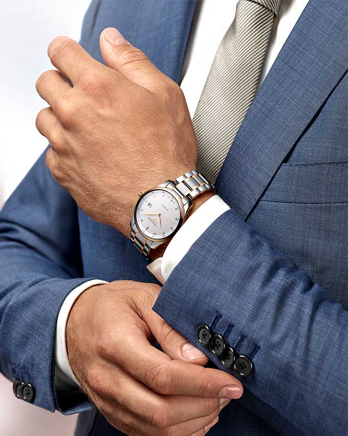 Pánské hodinky Longines Master Collection jsou kombinací klasiky a moderních technologických řešení. V dlouhé a slavné historii si Longines od samého počátku vybudoval reputaci pro své vynikající produkty, které zahrnují výjimečné řemeslné zpracování a nezaměnitelný styl. Na základě úspěchu Master Collection od svého představení v roce 2005 švýcarská značka představuje modely využívající nejnovější technologie. Hodinky Longines Master Collection L2.893.5.77.7 v sobě snoubí klasickou eleganci a vynikající kvalitu, která nikdy nepřestane těšit milovníky výjimečných hodinek. Stříbrný ciferník zdobí 13 třpytivých diamantů a je chráněn lehce vypouklým safírovým sklíčkem, které nepoškrábe. Pouzdro z nerezové oceli o tloušťce 42 mm a 18K růžového zlata je na spodní straně glazované a odhaluje krásně zpracovaný automatický Machineek. Prvky náramku jsou rovněž zdobeny 18karátovým zlatem.