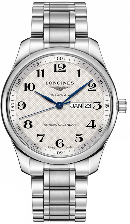 Roční kalendář Longines Master Collection L2.920.4.78.6, který kombinuje klasickou eleganci s technickou dokonalostí, s plným kalendářem obsahuje nový automatický kalibr L897 ETA A31.L81 umístěný v 42mm pouzdru z nerezové oceli. Přes skleněná záda lze obdivovat Machineek s rezervou chodu 64 hodin a plným kalendářem ve 3 hodiny. Roční kalendář Longines Master Collection má roční kalendář, který automaticky upravuje datum pro měsíce s 30 a 31 dny (tato operace probíhá mezi 24:00 a 5:00). Nezahrnuje však skok únorového data, a proto se musí jednou ročně upravit ručně. Elegantní ručičky vynikají na pozadí stříbrného ciferníku s potiskem ječného klasu. Elegantní hodinky doplňuje pevný a elegantní náramek s matnými a leštěnými prvky.