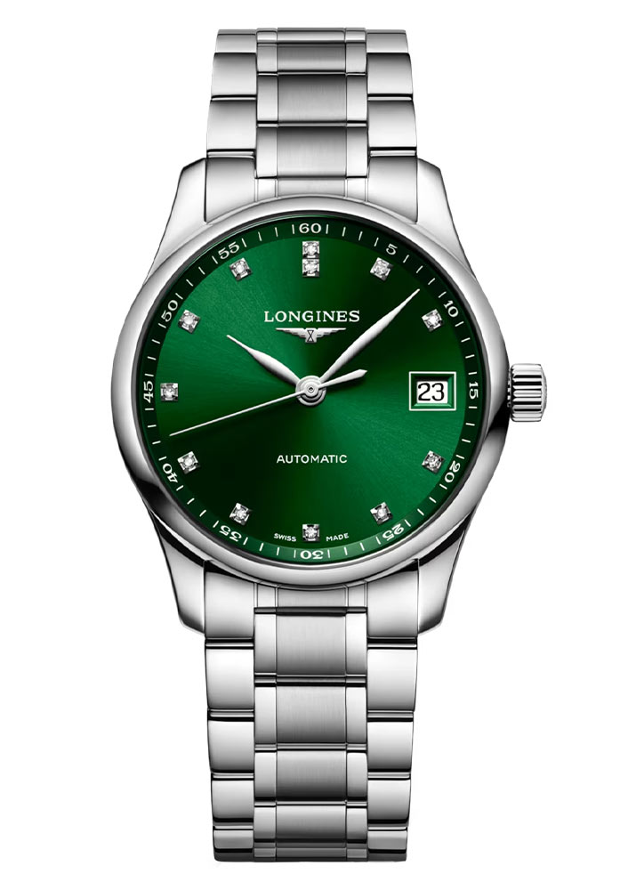 Pod extrémně odolným safírovým sklíčkem s antireflexní vrstvou na obou stranách se skrývá zelený ciferník s luxusním přídavkem dvanácti 0,055 ct diamantů na hodinových bodech. Aktuální čas lze číst díky štíhlým, naleštěným ručkám. Ve 3 hodiny je datumové okno s aktuálním dnem v měsíci. Ciferník byl navržen tak, aby bylo možné na první pohled odečíst aktuální čas. Zdobený nádhernými diamanty potěší oko každého uživatele.
