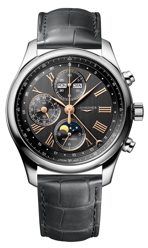 Chronograph Longines Master Collection L27734612 bude perfektním partnerem pro vaše cesty a obchodní jednání. Módní barvy usnadní sladění hodinek k různým typům více i méně formálních outfitů. Automatické hodinky Longines Master Collection s fází měsíce a chronografem budou skvělým doplňkem každého pánského šatníku.