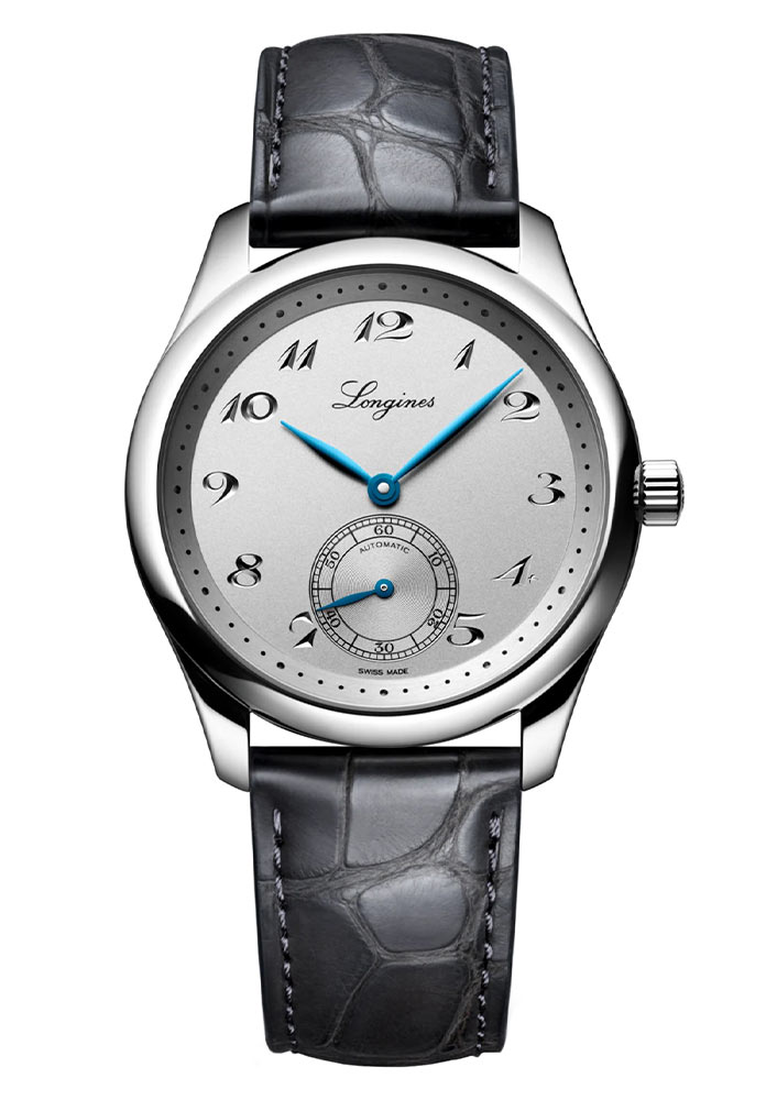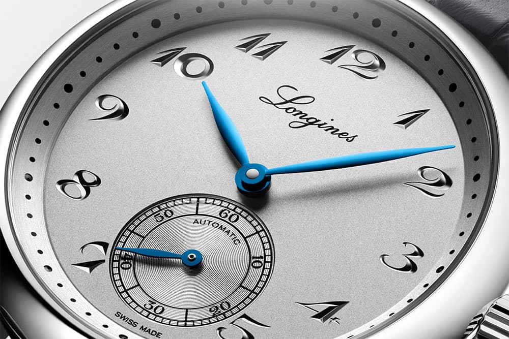 Na přední straně je průhledné safírové sklíčko vysoce odolné proti poškrábání. Sklo má na obou stranách vícevrstvou antireflexní vrstvu - zvyšuje čitelnost ciferníku. Samotný ciferník je stříbrný ciferník s vyrytými arabskými číslicemi. Aktuální čas udávají dvě štíhlé a elegantní modře zoxidované ručičky. Na šestou hodinu výrobce umístil malý vteřinový ciferník. Ciferník je minimalistický, elegantní a osloví sofistikované muže. Pod ciferníkem je automatický Machineek Longines. L893 je jedinečný čip řízený zápěstím. Je vybaven speciální antimagnetickou vyvažovací pružinou z monokrystalického křemíku. Mechanismus má rezervu chodu až 72 hodin, což vám při plném nabití umožní odpočinout si od používání hodinek bez obav, že přestanou fungovat.