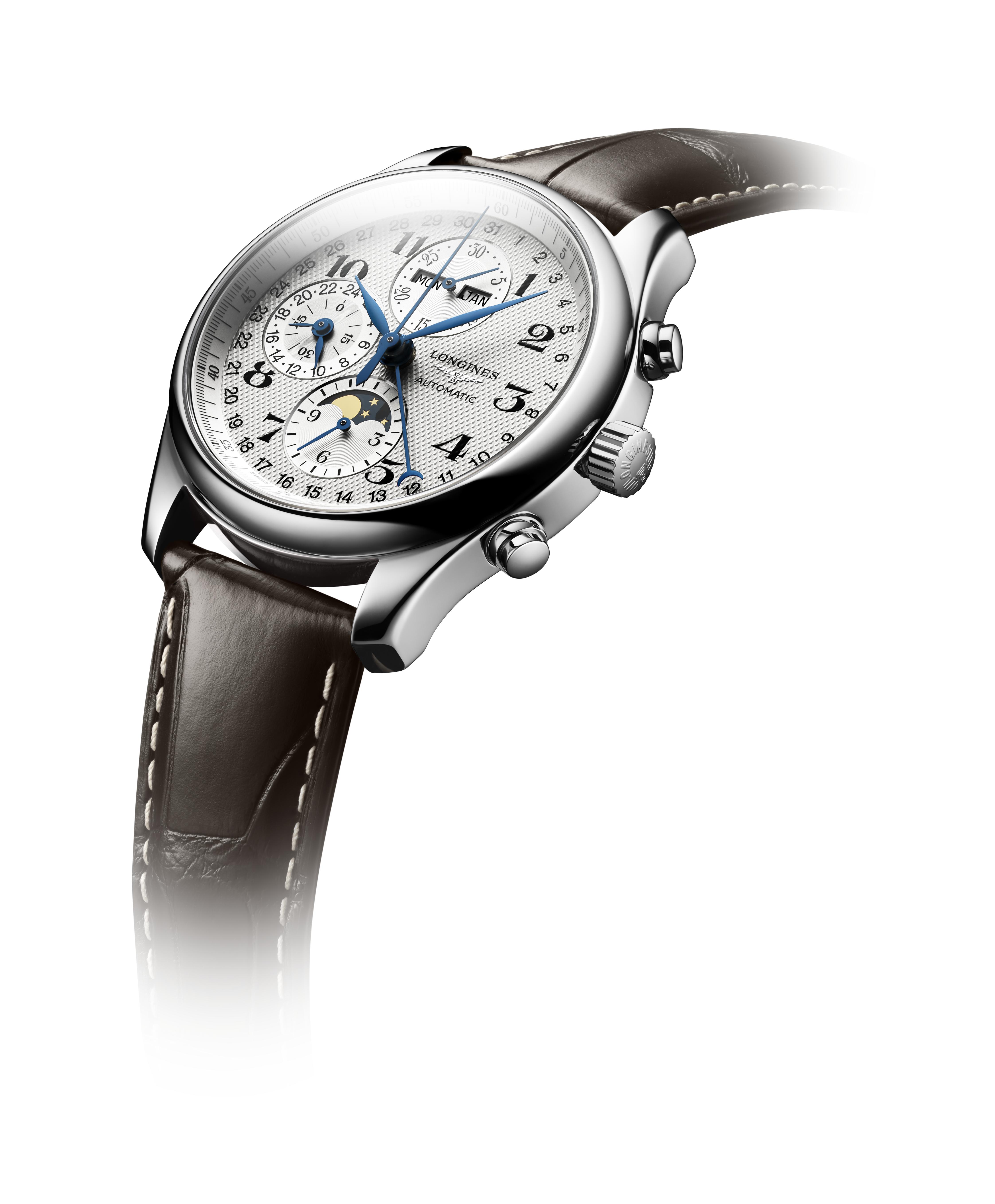 Longines si v dlouhé a proslulé tradici od samého počátku vybudoval reputaci svými vynikajícími produkty, a to jak na základě výjimečného řemesla, tak i nezaměnitelného stylu. S Longines Master Collection se jim to daří dokonale. Na základě úspěchu této kolekce vytvořila společnost Longines od jejího uvedení na trh v roce 2005 pánské hodinky Longines Master Collection L2.773.4.78.3 . Časomíra zaujme nejen svým vzhledem, ale i technologickým řešením. Automatický Machineek ETA 7751 Valjoux s funkcí chronografu . Kromě stopek mají hodinky další funkce. Počínaje horní částí modrého ciferníku jsou dvě okna na 12. hodině s datumovkou zobrazující název týdne a měsíce. Centrální ukazatel končící půlměsícem je zodpovědný za indikaci čísla dne v měsíci. Na 9. hodině jsou dvě ručičky, jedna je vteřinová a druhá ukazuje čas na 24hodinové stupnici. Úplně dole na číselníku jsou fáze měsíce. Všechny tyto funkce fungují mechanicky, za jejich provoz není zodpovědná žádná elektronika. Nádherně zpracovaný a extrémně složitý Machineek se vyznačuje přesností a 46hodinovou rezervou chodu (doba, kterou hodinky uběhnou po sejmutí z ruky při plném nabití natahovací pružiny). Pouzdro z nerezové oceli o průměru 42 mm je vyleštěno do vysokého lesku a elegantní ciferník chrání safírové sklíčko odolné proti poškrábání. Třešničkou na dortu je modrý aligátoří kožený řemínek zakončený motýlkovou sponou, která se zapíná na knoflíky.