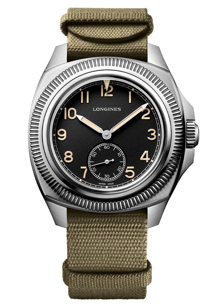 Longines L2.838.4.53.8 je verze hodinek na řemínku ve stylu NATO z recyklovaných materiálů v khaki zelené barvě s matně černým ciferníkem. Bílé arabské číslice jsou potaženy vrstvou Super-LumiNova® v odstínu antiqued radium. Jejich úlohou je udávat po sobě jdoucí hodiny, což je zdůrazněno minutovou stupnicí ve stylu kolejiště. Uprostřed ciferníku jsou jednoduché ručky vyplněné fosforeskujícím povlakem a s rhodiovanými hroty. Zvětšená forma malých sekund fungujících na 6. hodině současně s drážkovanou lunetou nám připomíná průkopnický, utilitární charakter pilotních hodinek. Design v plném rozsahu vyzařuje eleganci a zaujme svou vyvážeností.