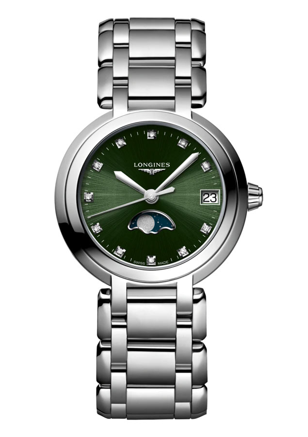 Dámské hodinky Top Wesselton Longines PrimaLuna L8.115.4.67.6 s diamanty jsou luxusním modelem pro dámy inspirovaným noční oblohou. Jeho malé, ale velmi charakteristické pouzdro se snaží věrně odrážet kouzlo Stříbrného glóbu a zelený ciferník posázený diamanty okouzluje po setmění pohled na oblohu ozářenou hvězdami. Pokud hledáte dokonalý způsob, jak vylepšit svůj sofistikovaný styl a svůdnou krásu, hodinky Longines PrimaLuna jsou vaší hvězdou v galaxii.