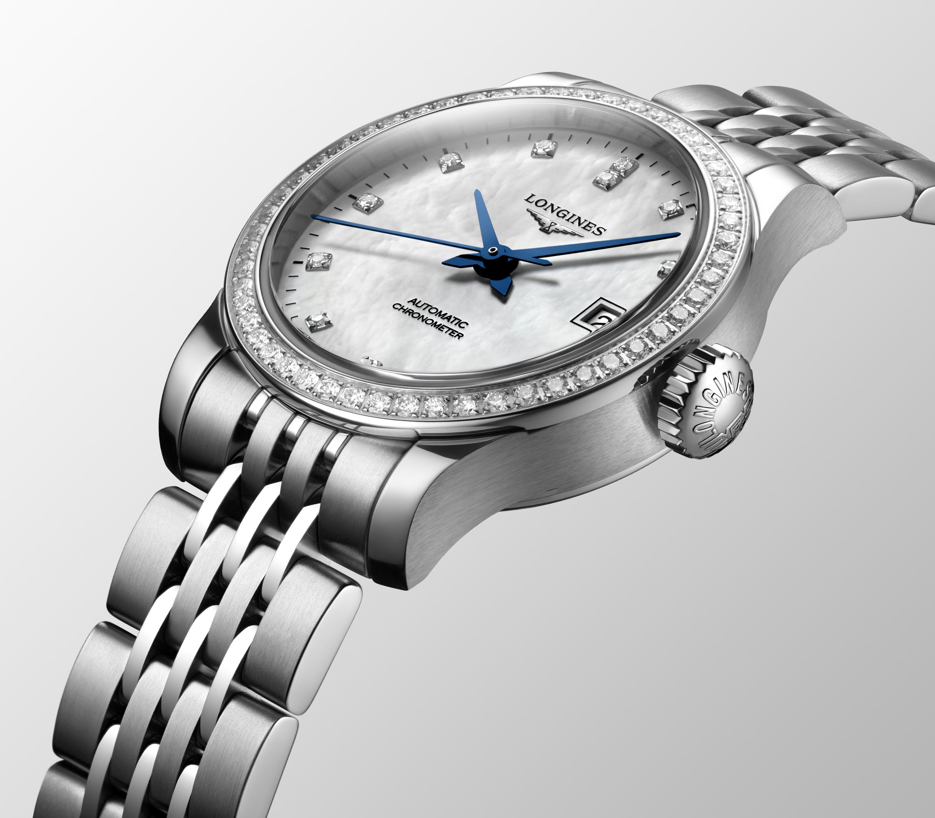 S novými dámskými hodinkami Record Longines vyjadřuje podstatu značky, spojuje nadčasovou eleganci s dokonalostí. To jsou hodnoty, které kolekci jistě dostanou na úroveň hodnou budoucích úspěchů značky. Model je mostem mezi tradicí a inovací. Rozhodně klasický styl je charakteristickým znakem hodinářství na nejvyšší úrovni od Longines.