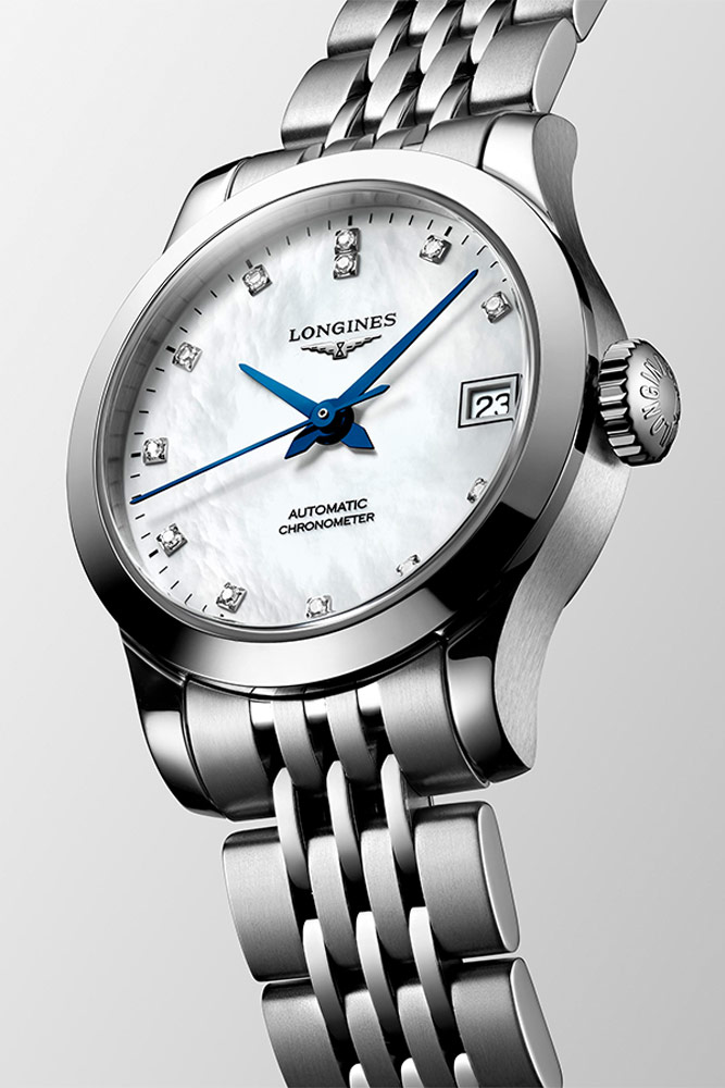 S novými dámskými hodinkami Record Longines vyjadřuje podstatu značky, spojuje nadčasovou eleganci s dokonalostí. To jsou hodnoty, které kolekci jistě dostanou na úroveň hodnou budoucích úspěchů značky. Model je mostem mezi tradicí a inovací. Rozhodně klasický styl je charakteristickým znakem hodinářství na nejvyšší úrovni od Longines.