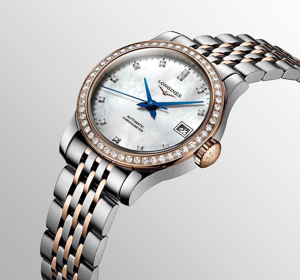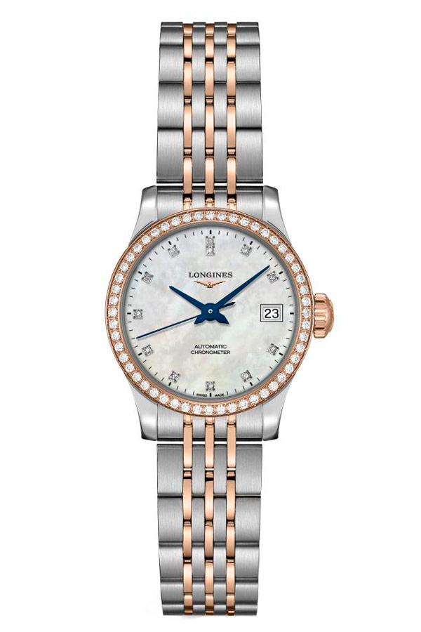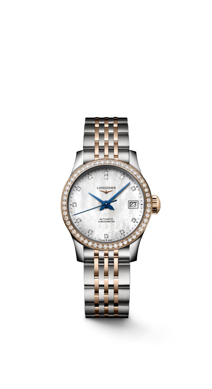 Dámské hodinky Longines Record Lady L2.320.5.89.7 . S modelem Record Longines vyjadřuje podstatu značky, spojuje nadčasovou eleganci s dokonalostí. To jsou hodnoty, které kolekci jistě dostanou na úroveň hodnou budoucích úspěchů značky. Model je mostem mezi tradicí a inovací. Rozhodně klasický styl je charakteristickým znakem hodinářství na nejvyšší úrovni od Longines. Elegantní pouzdro a náramek z nerezové oceli a růžového zlata.
