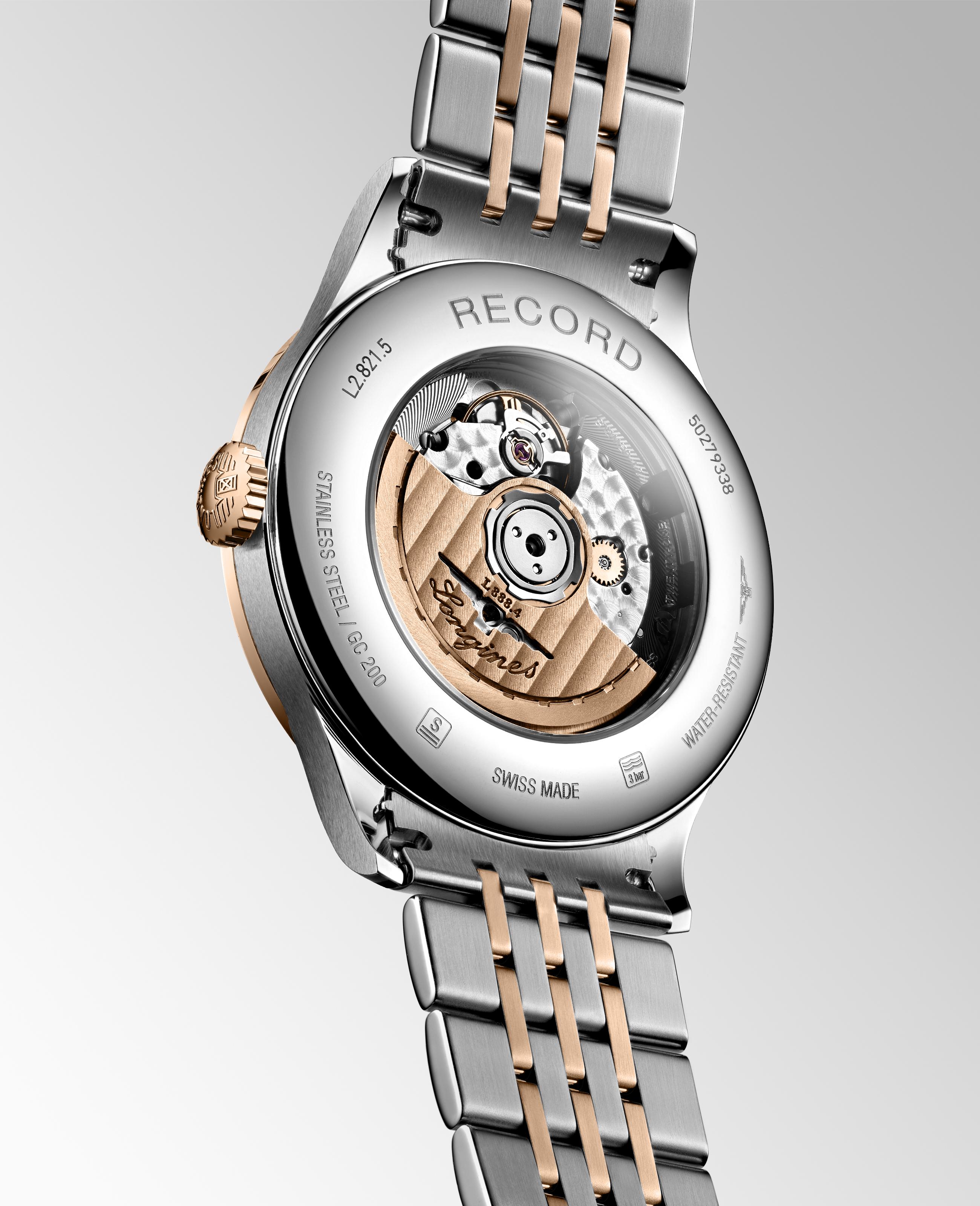 S modelem Record Longines vyjadřuje podstatu značky, spojuje nadčasovou eleganci s dokonalostí. To jsou hodnoty, které kolekci jistě dostanou na úroveň hodnou budoucích úspěchů značky. Model je mostem mezi tradicí a inovací. Rozhodně klasický styl je charakteristickým znakem hodinářství na nejvyšší úrovni od Longines. Prvky pouzdra a náramku jsou vyrobeny z 18karátového růžového zlata.