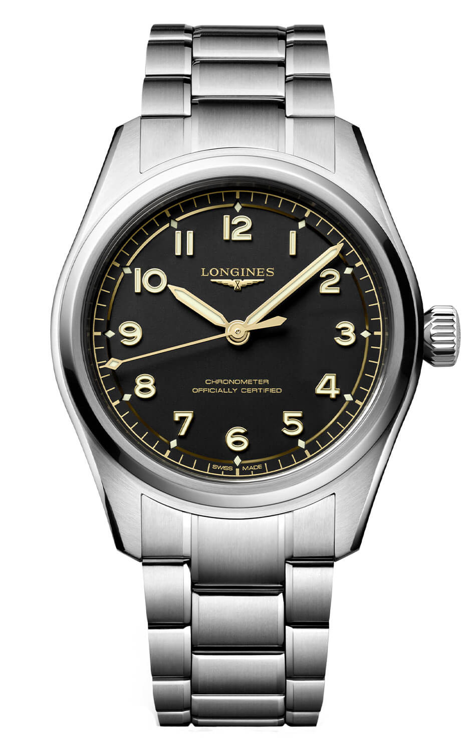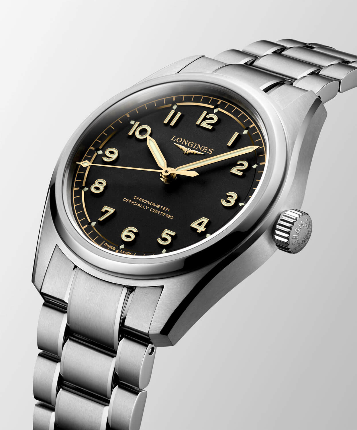 Ciferník je čistou esencí čitelnosti: matná čerň, arabské číslice s béžovou Super-LumiNova®, úzká minutová škála a výrazné ručky ve stylu aviator – vše redukováno na minimum, aby byl odečet času snadný v každé situaci. Pod ciferníkem pracuje automatický strojek L888.4 COSC s křemíkovou vlásenkou setrvačky a 72hodinovou rezervou chodu, zajišťující plynulý a stabilní chod i při proměnlivých podmínkách. Pokud hledáte precizní pánské hodinky v duchu leteckého nástroje — Longines Automatic Chronometer L3.809.4.53.6 hovoří sám za sebe. Je to model pro ty muže, kteří hledají čas v jeho nejčistší podobě — ne doplněk, ale nástroj.