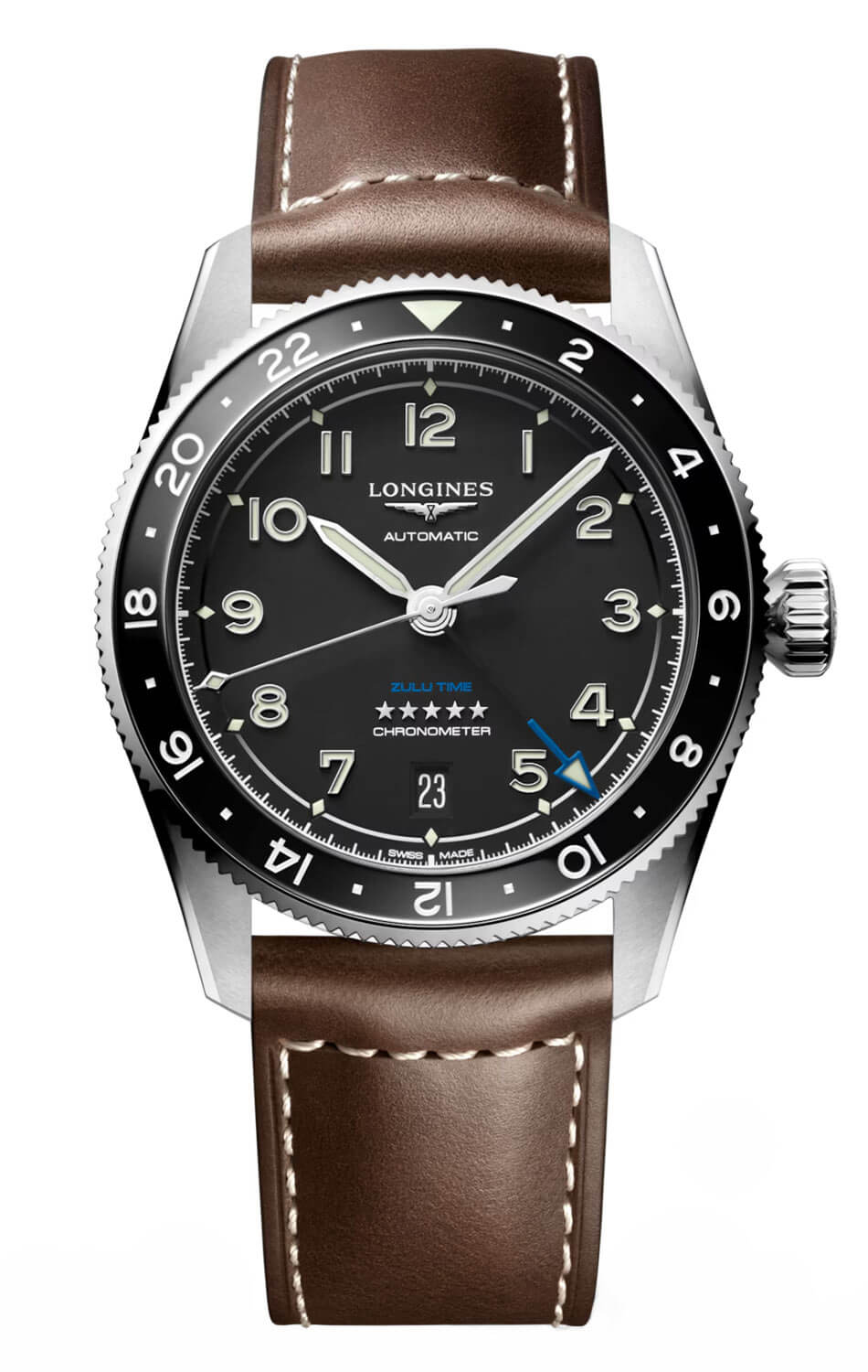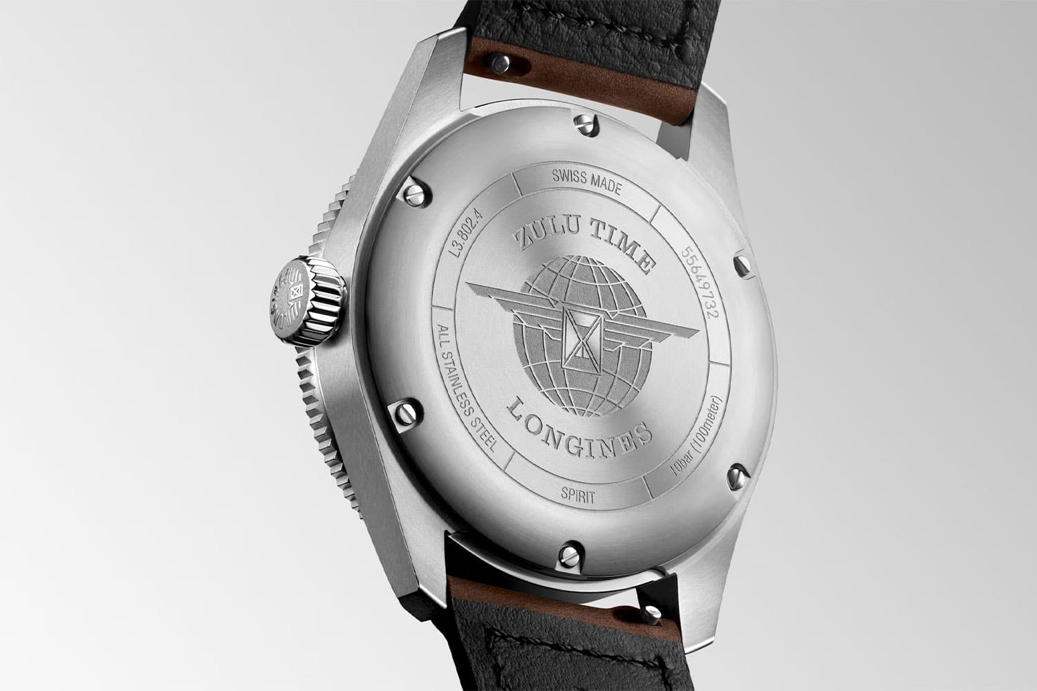 Longines Spirit Zulu Time inspirovaný leteckým dědictvím švýcarské značky. Jde o spojení technické dokonalosti a estetiky. Nerezové pouzdro o průměru 39 mm ze spodní části je uzavřeno šestizávorovými zády pouzdra s vyrytým historickým logem. Okřídlené přesýpací hodiny na pozadí zeměBALL jsou mezi sběrateli žádané. Velká šroubovací korunka s tvarem typickým pro letecké hodinky. Mírně vypouklé safírové sklíčko je zespodu a shora pokryto několika antireflexními vrstvami, které zajišťují nebývalou čitelnost a průhlednost. Nejdůležitějším prvkem modelu Spirit je jeho černý ciferník, který obsahuje nejen nejnovější technická řešení, ale také odkazuje na ikonické modely Longines z doby před lety: