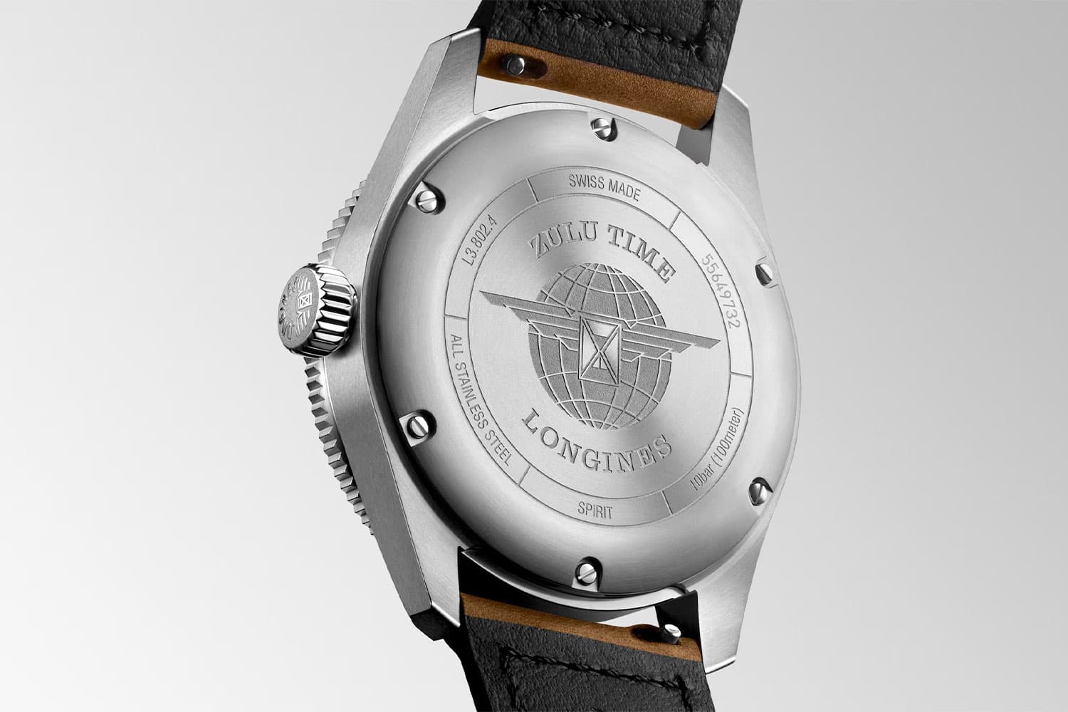 Longines Spirit Zulu Time inspirovaný leteckým dědictvím švýcarské značky. Jde o spojení technické dokonalosti a estetiky. Nerezové pouzdro o průměru 39 mm ze spodní části je uzavřeno šestizávorovými zády pouzdra s vyrytým historickým logem. Okřídlené přesýpací hodiny na pozadí zeměBALL jsou mezi sběrateli žádané. Velká šroubovací korunka s tvarem typickým pro letecké hodinky. Mírně vypouklé safírové sklíčko je zespodu a shora pokryto vícenásobnými antireflexními vrstvami, které zajišťují bezprecedentní čitelnost a průhlednost. Nejdůležitějším prvkem modelu Spirit je jeho antracitový ciferník s nejen nejnovějšími technickými řešeními, ale také odkazem na ikonické modely Longines z doby před lety: