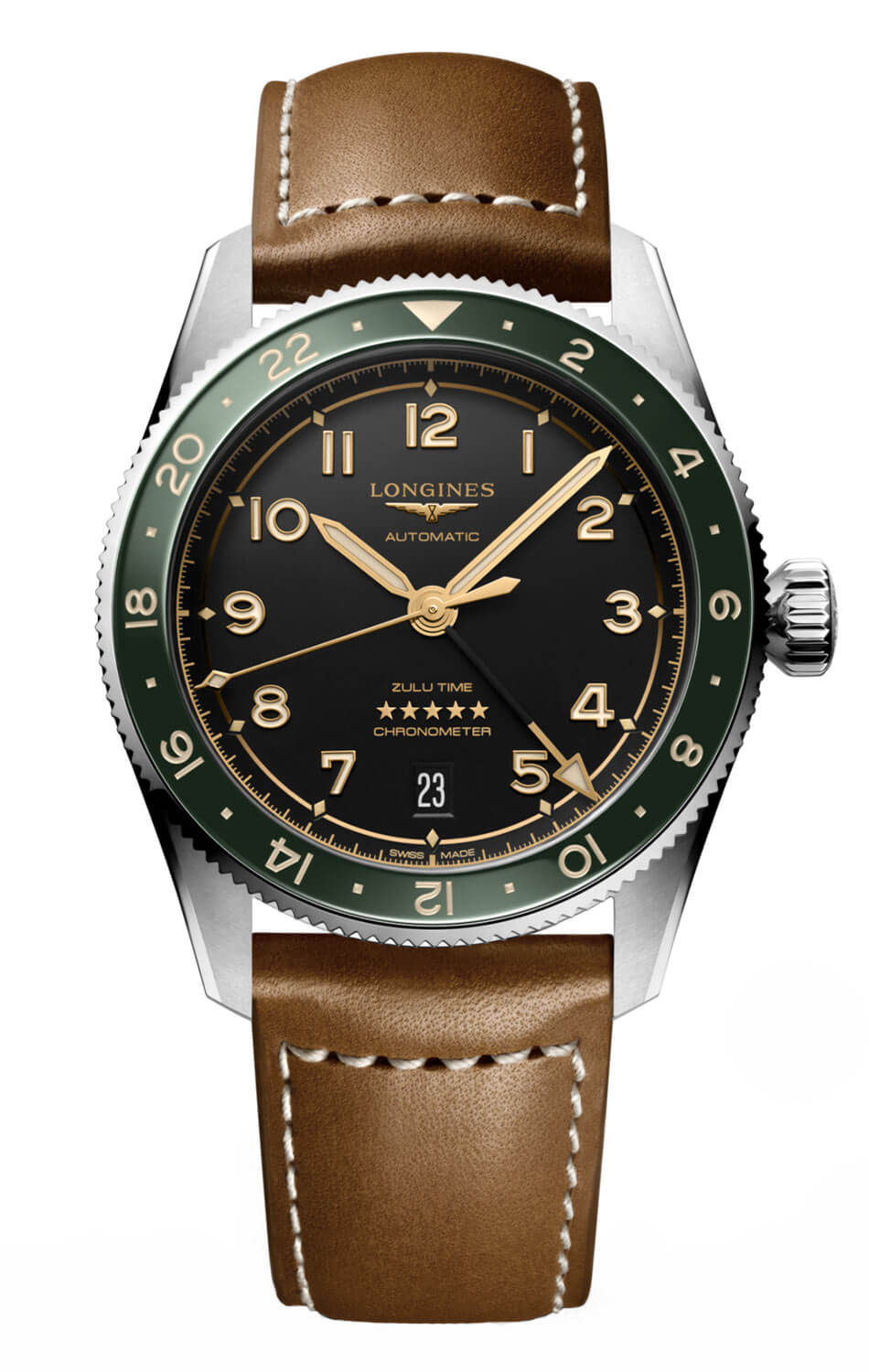 Během své historie Longines často doprovázel legendární průkopníky při dobývání vzduchu, země a moře. Značka okřídlených přesýpacích hodin čerpala inspiraci ze svého dědictví a vytvořila Longines Spirit, kolekci s neposkvrněným rodokmenem. Řada, která spojuje historii a inovace, přebírá tradiční rysy pilotních hodinek a úspěšně je propojuje se současnými designovými liniemi a módními barvami. Longines rozšiřuje kolekci o model GMT: The Longines Spirit Zulu Time. Jde o odkaz na první náramkové hodinky Longines, které ukazují druhé časové pásmo, model Zulu Time z roku 1925, který se vyznačoval typickou vlajkou Z na číselníku. Z je ekvivalent Zuluského času, univerzálního formátu času používaného v letectví a armádě dodnes. Výjimečné pánské hodinky Longines Spirit Zulu Time L3.802.4.63.2 se vyznačují exkluzivním novým kalibrem se třemi časovými zónami a datumovkou v 6. Hodiny mají obousměrně otočnou lunetu s keramickou vložkou s 24hodinovou stupnicí. The Longines Spirit Zulu ztělesňuje ducha dobrodružství pro dnešní cestovatele.