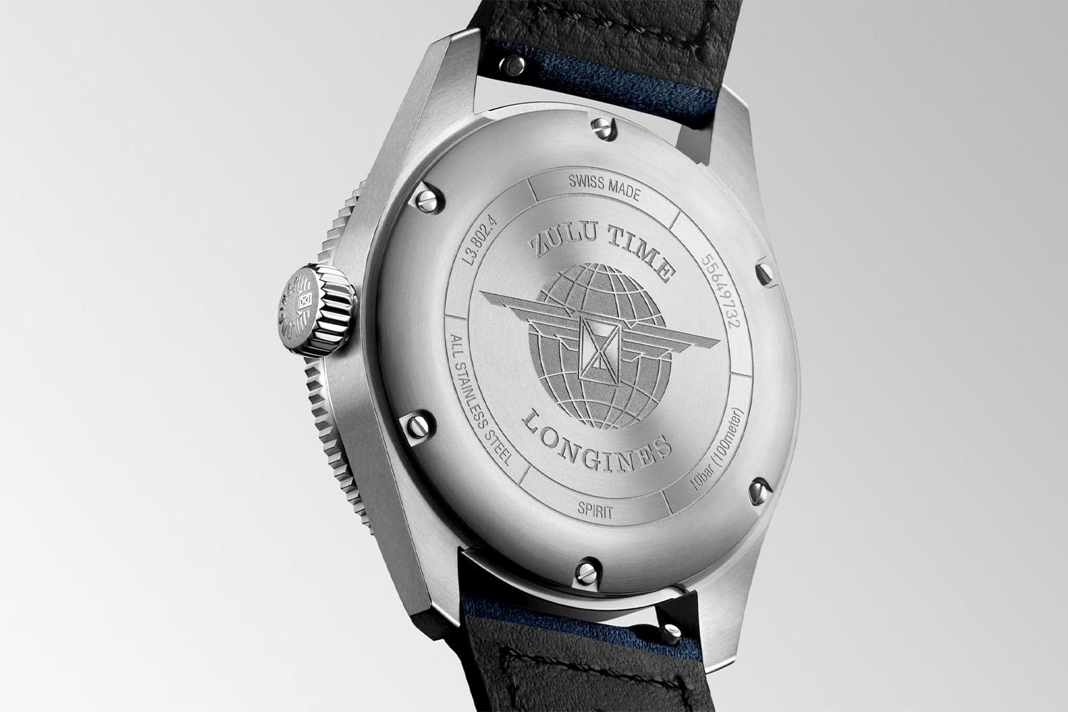 Longines Spirit Zulu Time inspirovaný leteckým dědictvím švýcarské značky. Jde o spojení technické dokonalosti a estetiky. Nerezové pouzdro o průměru 39 mm ze spodní části je uzavřeno šestizávorovými zády pouzdra s vyrytým historickým logem. Okřídlené přesýpací hodiny na pozadí zeměBALL jsou mezi sběrateli žádané. Velká šroubovací korunka s tvarem typickým pro letecké hodinky. Mírně vypouklé safírové sklíčko je zespodu a shora pokryto několika antireflexními vrstvami, které zajišťují nebývalou čitelnost a průhlednost. Nejdůležitějším prvkem modelu Spirit je jeho modrý ciferník obsahující nejen nejnovější technická řešení, ale také odkaz na ikonické modely Longines z doby před lety: