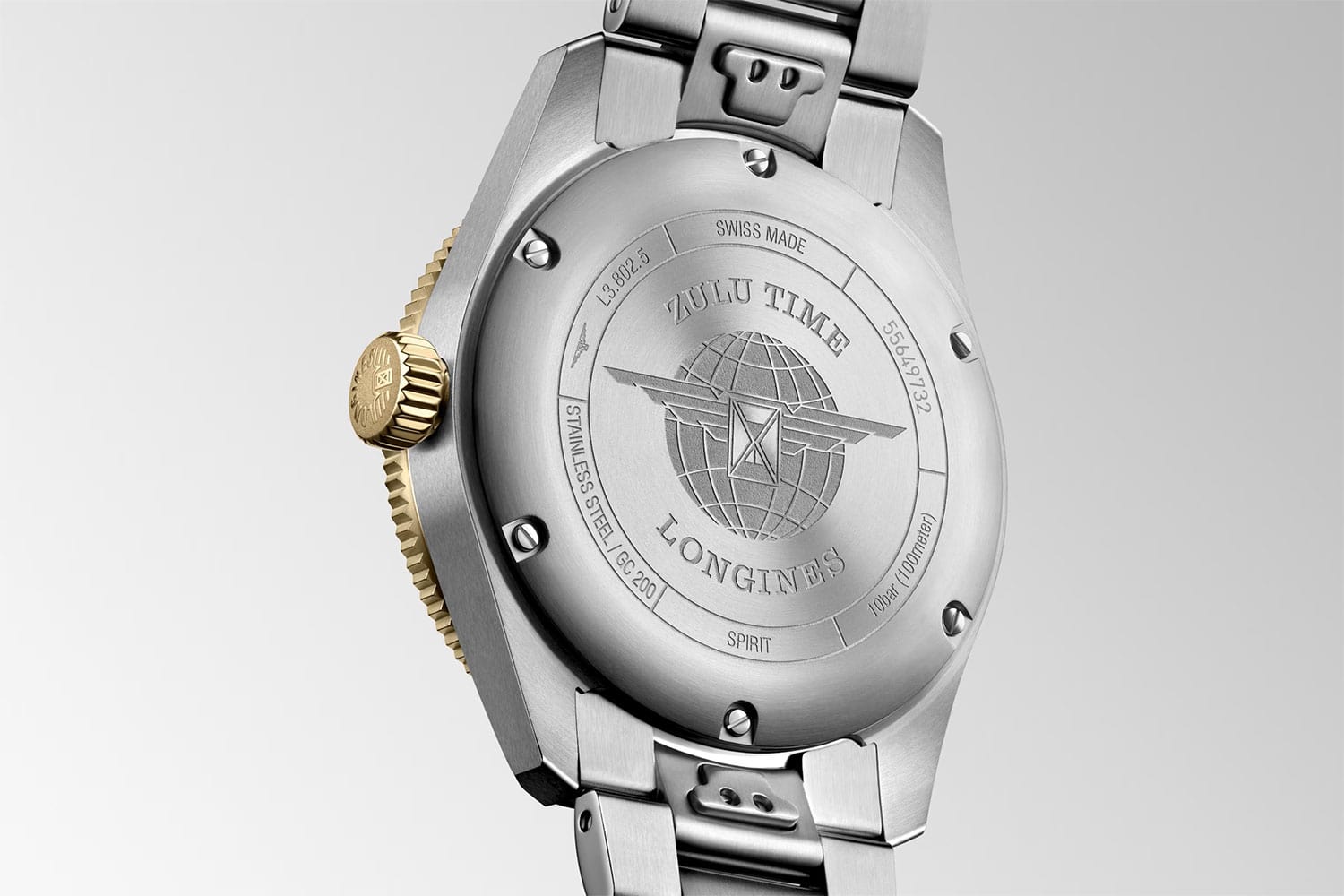 Longines Spirit Zulu Time inspirovaný leteckým dědictvím švýcarské značky. Jde o spojení technické dokonalosti a estetiky. Nerezové pouzdro o průměru 39 mm ze spodní části je uzavřeno šestizávorovými zády pouzdra s vyrytým historickým logem. Okřídlené přesýpací hodiny na pozadí zeměBALL jsou mezi sběrateli žádané. Velká šroubovací korunka s tvarem typickým pro letecké hodinky. Mírně vypouklé safírové sklíčko je zespodu a shora pokryto vícenásobnými antireflexními vrstvami, které zajišťují bezprecedentní čitelnost a průhlednost. Nejdůležitějším prvkem modelu Spirit je jeho antracitový ciferník s nejen nejnovějšími technickými řešeními, ale také odkazem na ikonické modely Longines z doby před lety: