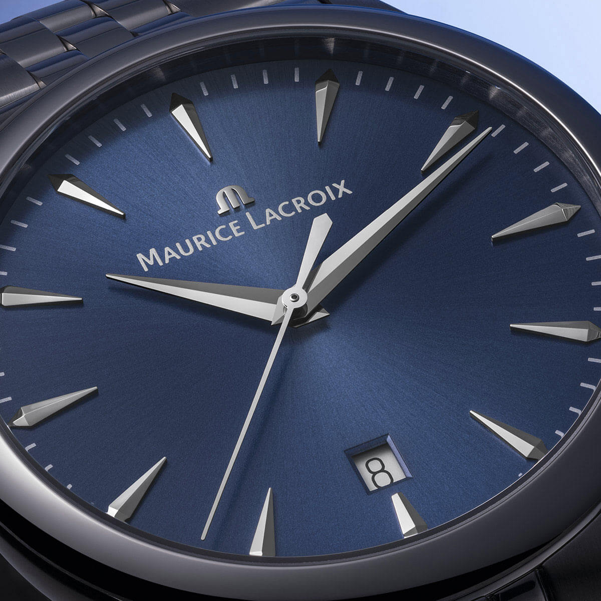 Hlavní dominantou hodinek je však ciferník, který uchvátí hloubkou barvy a jemným slunečním brusem. Modrý pozadí efektně odráží světlo, zatímco ručně aplikované lichoběžníkové indexy a fazetované ručky dauphine mu dodávají sofistikovaný charakter. Na šesté hodině se nachází datumovka, která nenápadně doplňuje minimalistické uspořádání ciferníku. Přesný švýcarský quartzový strojek zajišťuje naprostou přesnost za každé situace, což činí tyto hodinky ideální volbou pro ty, kteří od svého časoměru očekávají bezchybnou spolehlivost bez kompromisů. Maurice Lacroix 1975 Quartz 751007-SS002-430-1 nejsou jen obyčejné hodinky – jsou esencí nadčasové elegance, uzavřenou ve formě, která splní očekávání i těch nejnáročnějších znalců.