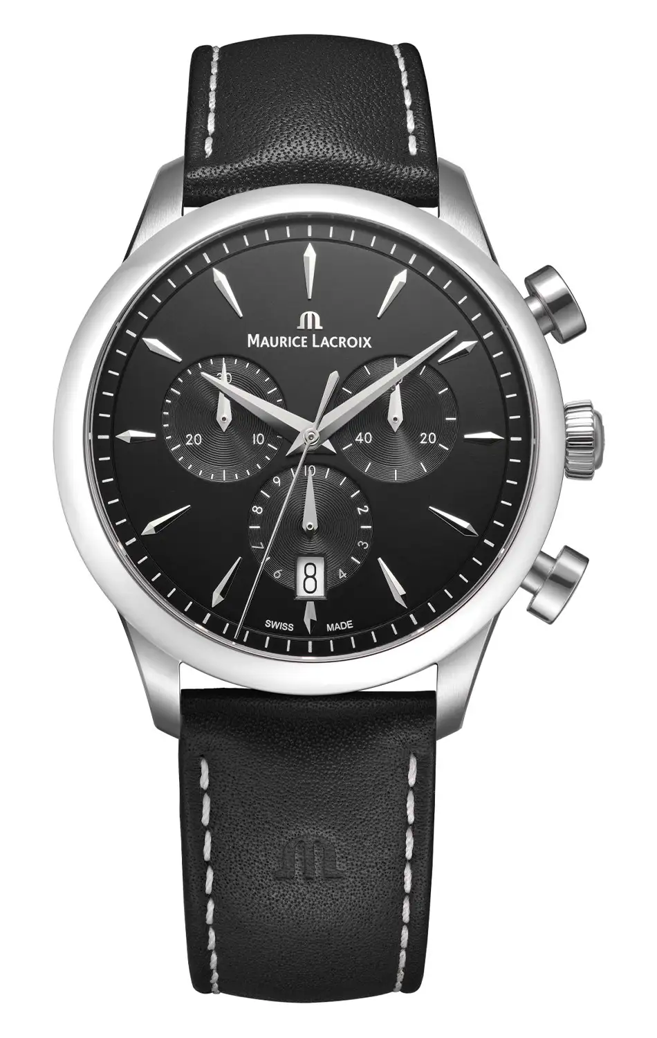 Elegantní pánské hodinky s chronografem na černém koženém řemínku Maurice Lacroix 1975 Quartz Chronograph 751038-SS001-330-1 zaujmou na první pohled svým vytříbeným vintage stylem. Klíčový pojem – Maurice Lacroix 1975 – podtrhuje charakter modelu vytvořeného pro náročné milovníky švýcarských hodinek, kteří hledají harmonii mezi klasikou a moderním designem. Štíhlé ocelové pouzdro o průměru 40 mm a výšce 10 mm kombinuje kartáčované a leštěné plochy, zatímco stříbrný ciferník typu panda s kontrastními černými subciferníky chronografu a rhodiovanými indexy a ručkami vytváří dynamický a zároveň elegantní dojem. Safírové sklíčko s dvojitou antireflexní vrstvou zajišťuje vynikající čitelnost za všech okolností.