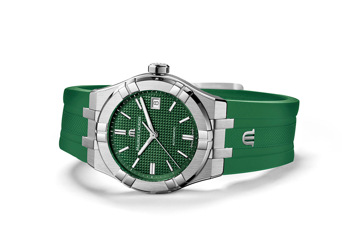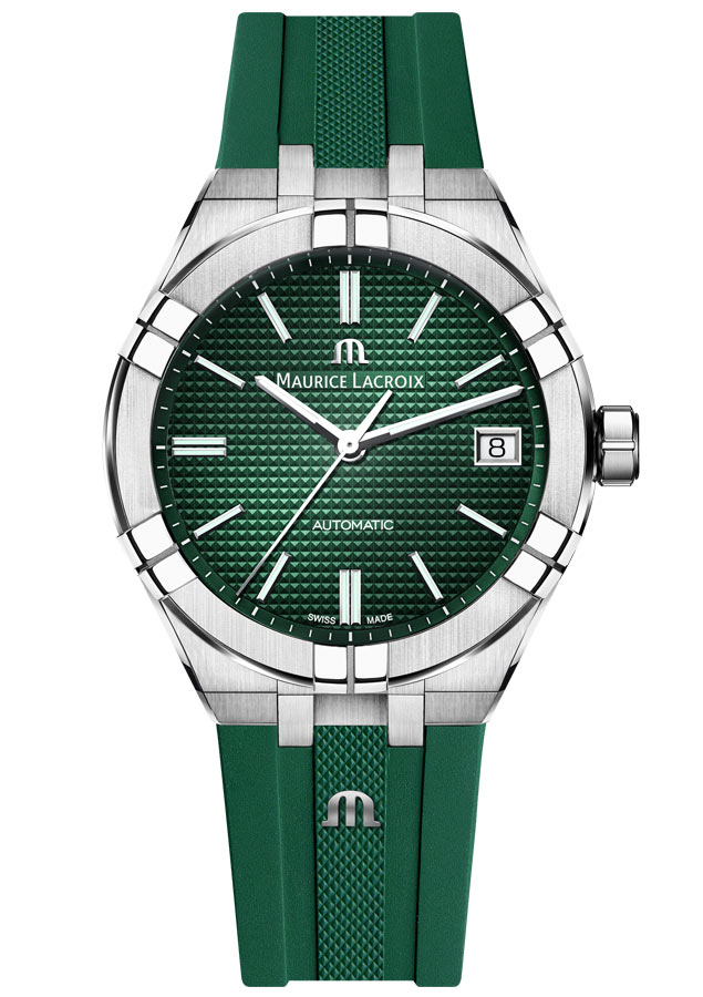 Model Aikon Automatic zaujme zeleným leštěným ciferníkem Clous de Paris . Vyrobeno z nerezové oceli, má saténový povrch a hrany a šest ramen na pouzdře jsou leštěné. Tato dynamika pokračuje ve tvaru krajky, která je ostrá a přitom hladká na dotek. Díky silnému charakteru, vysokému standardu povrchové úpravy a ergonomickému tvaru jsou hodinky Aikon Automatic mimořádně vytříbené.