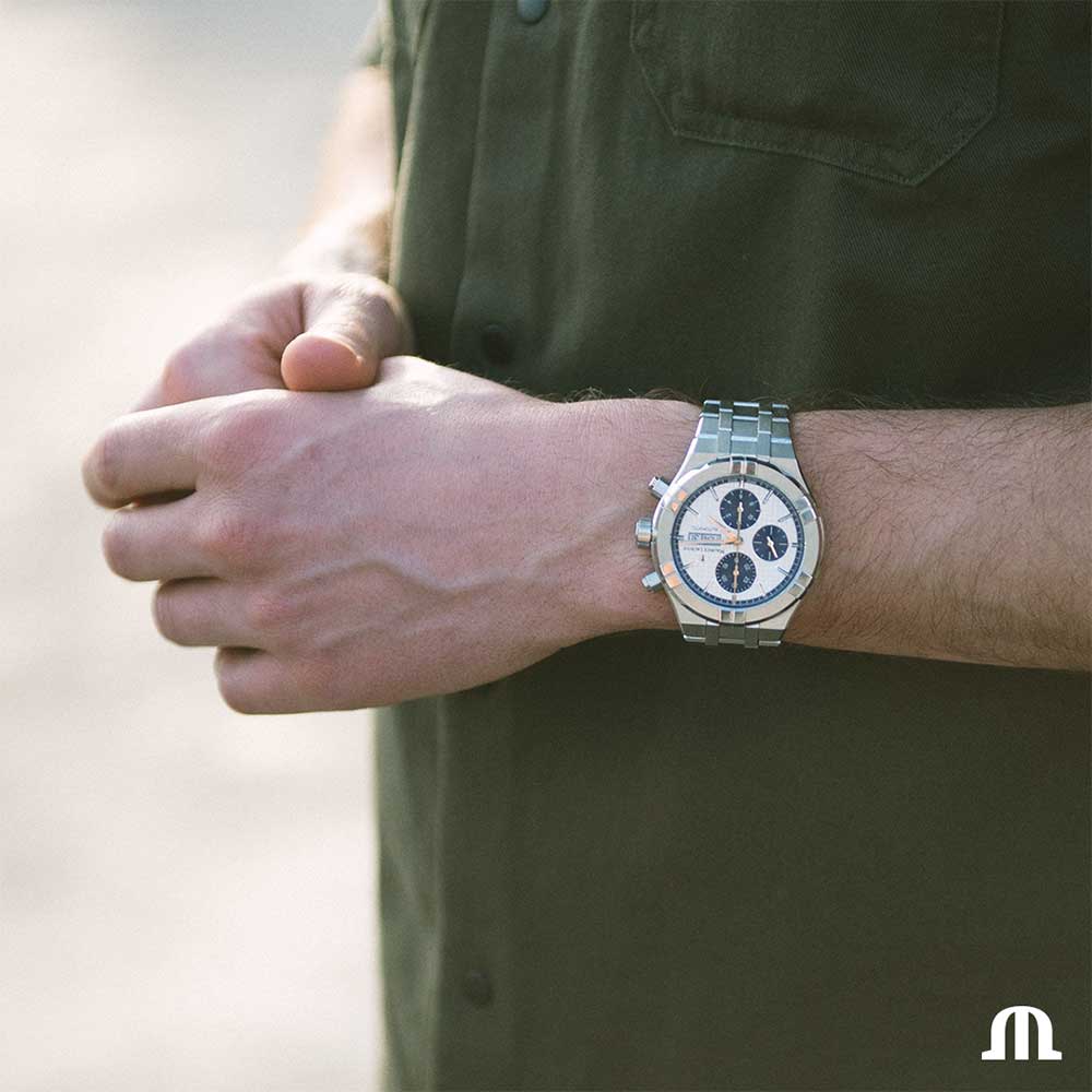 Automatický chronograf Maurice Lacroix Aikon má solidní vzhled. V jeho velkém průměru 44 mm je uložen automatický kalibr chronografu ML 112. Je také voděodolný do 200 m, což dále zaručuje šroubovací korunka a tlačky chronografu. Aby byly hodinky ještě praktičtější a ergonomičtější, byl představen systém rychlé výměny náramku EasyChange. Náramky, řemínky můžete snadno měnit podle nálady, rozmarů nebo oblečení díky jednoduchému výměnnému systému bez použití nářadí.