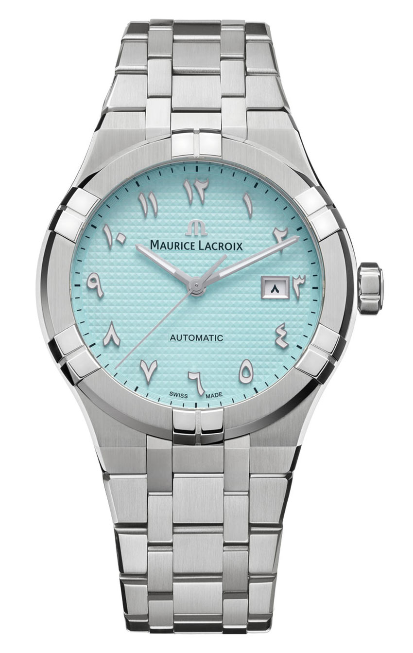 Světle modrý ciferník s výraznými ručičkami se chlubí kulturními detaily na hodinových značkách a v okně datumovky. Ciferník je zakrytý vysoce odolným safírovým sklem, které je rezistentní vůči poškrábání. Maurice Lacroix Aikon s automatickým strojkem ML 115 má vodotěsnost až do 200 metrů. Aby byly hodinky ještě praktičtější a ergonomičtější, byl zaveden systém rychlé výměny náramku EasyChange. Náramky a pásky lze snadno měnit podle nálady, rozmaru nebo oblečení díky jednoduchému systému výměny bez použití nástrojů.