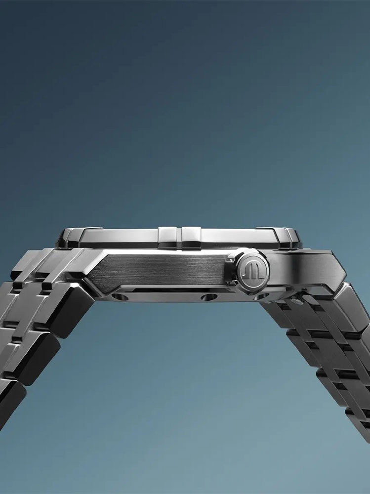 Maurice Lacroix Aikon Limited Summer Edition AI6007-SS00F-431-C byl uzavřen v 39mm pouzdru z nerezové oceli 316L . Ergonomický design hýčká zápěstí a zajišťuje vysoký komfort nošení. Hodinky byly utěsněny až do 200 metrů - 20 ATM , což vám umožňuje potápět se s časovačem na zápěstí bez obav z jeho poškození. Šroubovací korunka a zadní část pouzdra jsou důležitým prvkem těsnosti pouzdra. Výrobce zkombinoval svou časomíru s ocelovým náramkem s bezpečnou a pohodlnou motýlkovou sponou. Sada obsahuje gumový řemínek se zapínáním na přezku. Gumový řemínek může být skvělým řešením pro sportovní aktivity. Je flexibilní a voděodolný. Každý náramek je vybaven systémem Maurice Lacroix Easy Change System, který umožňuje vyměnit náramek za alternativní řemínek bez jakýchkoli dalších náMachineů.