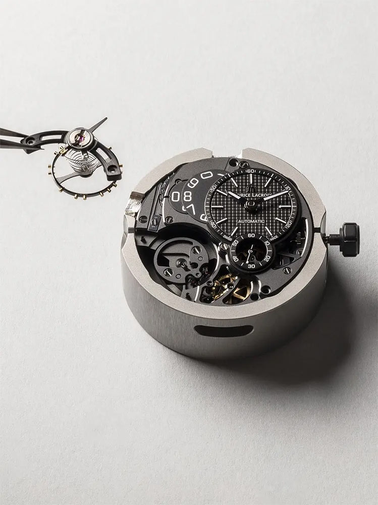 Skeletonové hodinky pro muže v setu s druhým řemínkem Maurice Lacroix Aikon Master Grand Date Black. Nový model, oděný do černobílých odstínů, dovedně žongluje s kontrasty , aby upoutal pozornost. Využití mechanické virtuozity rodiny hodinek Masterpiece a zároveň reprezentující urbanistický designový kód řady AIKON. Vyzkoušejte nejnovější hodinářský výtvor, který podporuje reputaci Maurice Lacroixe pro styl přitahující pozornost, švýcarské řemeslo a vysokou vnímanou hodnotu.