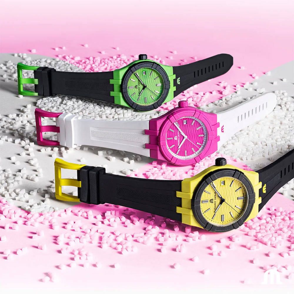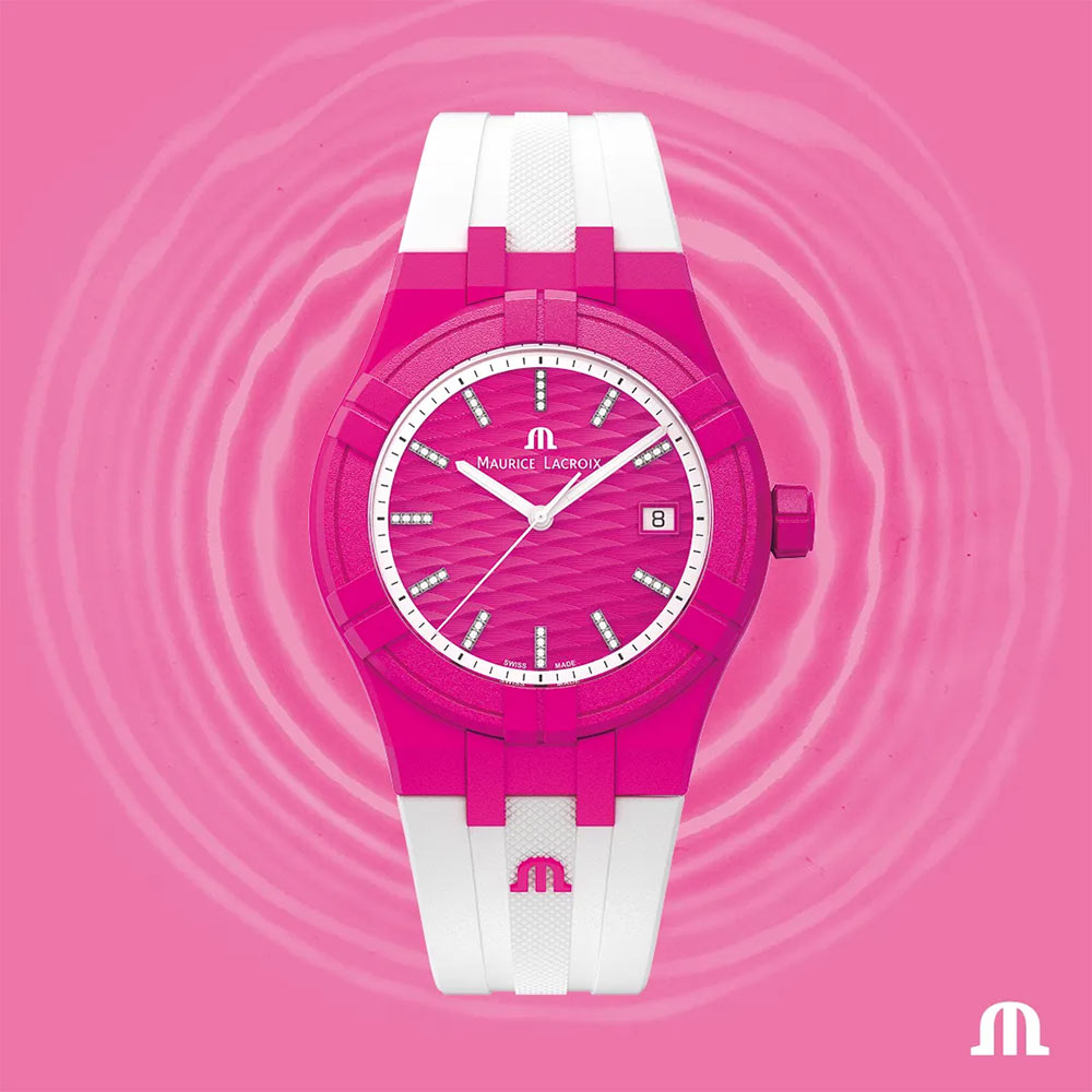 Maurice Lacroix představuje svou nejnovější kolekci Tide – nárůst, který má být okamžitě zaznamenán. Růžovo-bílé hodinky Maurice Lacroix Aikon Tide mají stejné vlastnosti jako ostatní členové rodiny Aikon, vyznačují se však materiálem pouzdra. Jeho trendy fuchsiové pouzdro jedné velikosti 40 mm je vyrobeno z recyklovaného plastu #tide ocean® . Tento materiál je vytvořen pomocí revoluční technologie, která přeměňuje oceánský plastový odpad na vysoce kvalitní švýcarské hodinky.