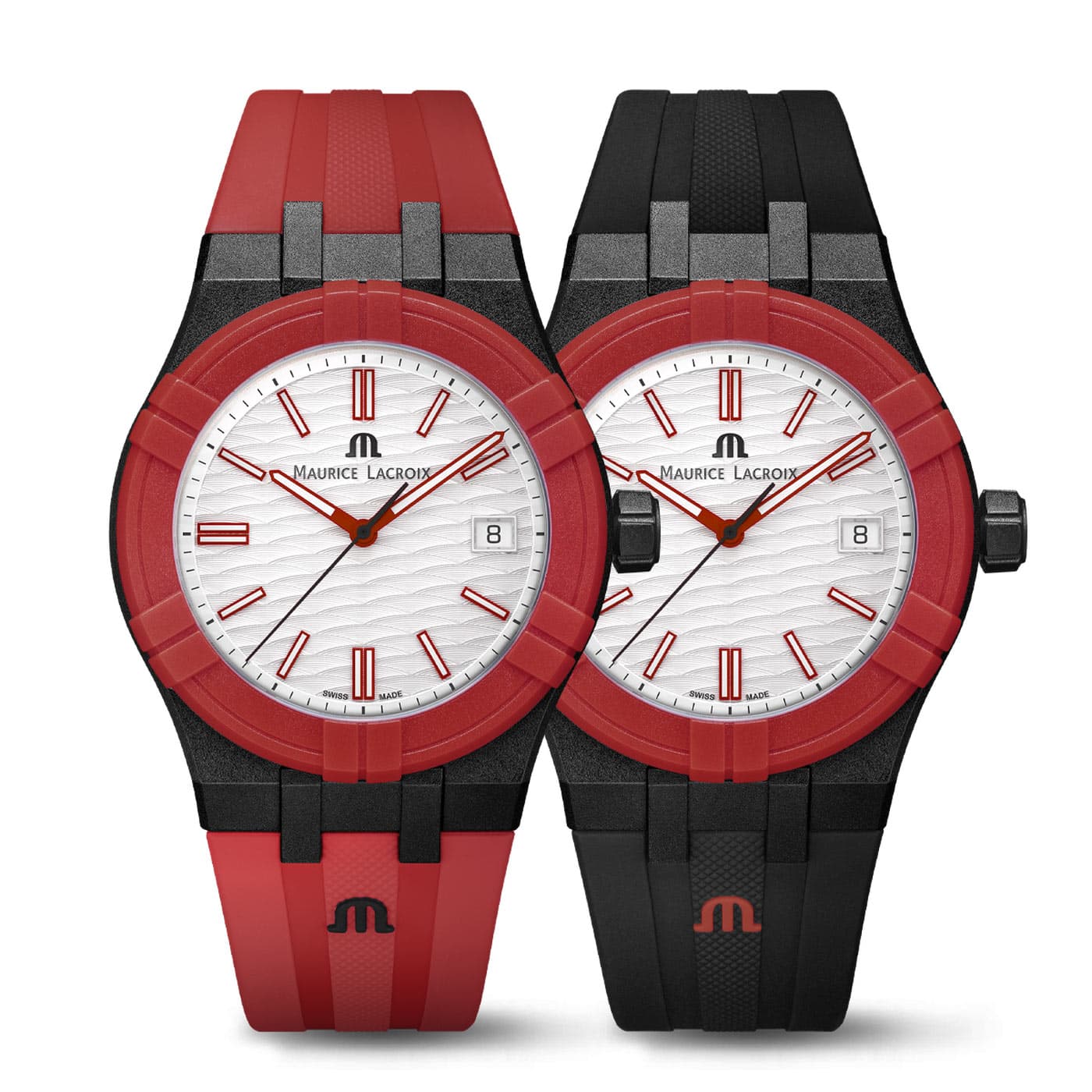 Maurice Lacroix představuje svou ekologickou kolekci Tide — příliv, který si nelze nevšimnout. Červeno-černé, nebo černo-červené hodinky Maurice Lacroix Aikon Tide mají stejné vlastnosti jako ostatní členové rodiny Aikon, ale liší se materiálem pouzdra. Jeho módní, černé pouzdro o univerzální velikosti 40 mm je vyrobeno z recyklovaného materiálu #tide ocean®. Tento materiál vzniká pomocí revoluční technologie, která přeměňuje odpad z plastů vyhozených do oceánu na vysoce kvalitní švýcarské hodinky. Na pouzdře je na první pohled patrná kontrastní, červená luneta.