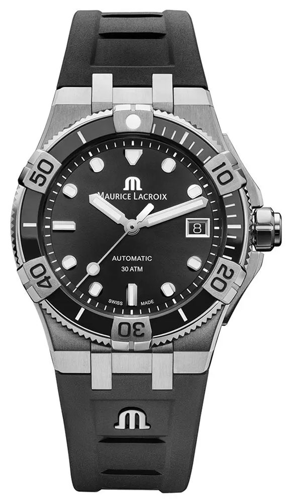 Výše uvedené švýcarské hodinky Maurice Lacroix AI6057-SSL20-330-2 jsou nabízeny s černým ciferníkem se stříbrnými hodinovými a minutovými ručkami potaženými bílou luminiscencí Super-LumiNova®. Minutová stupnice je označena jasnými bílými čarami, které obklopují ciferník a jsou velmi užitečné pro měření času. Centrální vteřinovka je vybavena „lízátkem“ svítícím ve tmě pro lepší čitelnost. Datumové okénko na pozici 3 hodin jasně vyniká proti leštěnému ciferníku. Veškerá typografie byla optimalizována tak, aby byl pohon funkční ve dne i v noci, na zemi i na moři. Spolehlivou ochranu zajišťuje safírové sklíčko prakticky odolné proti poškrábání s antireflexní vrstvou.