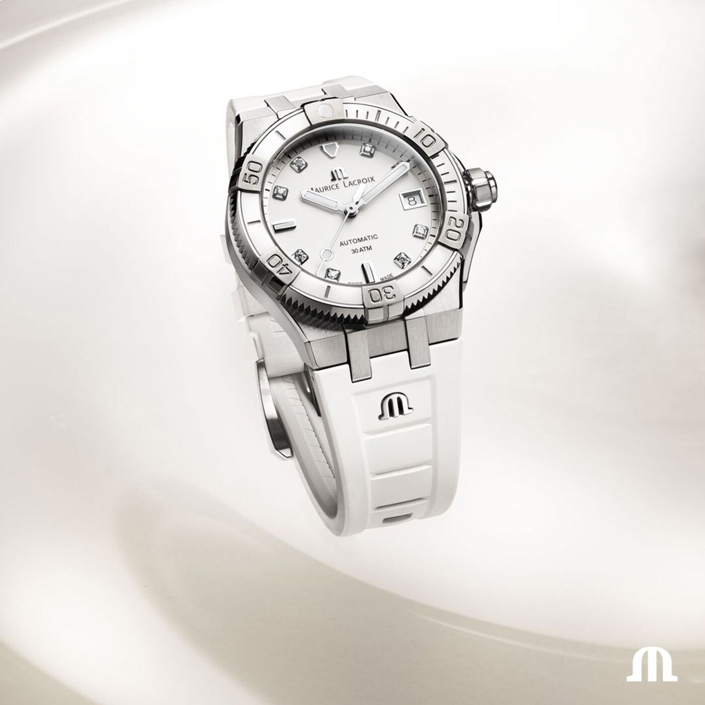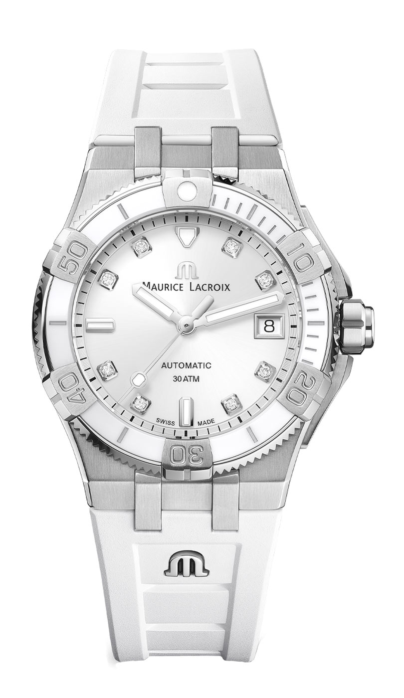 Dámské hodinky Maurice Lacroix Aikon Venturer Automatic AI6057-SSL70-150-7 přinášejí závan svěžesti a představují revoluci v dobře známé sérii AIKON, založené na hodinářské preciznosti Maurice Lacroix. Tento automatický model, zdobený osmi pravými diamanty, byl navržen pro odvážné ženy. Odkazuje na dobrodružného ducha řady AIKON, a díky systému „Easychange“ umožňuje rychlou změnu stylu, jako byste se bleskově přesunula mezi kontinenty. Je to elegantní doplněk s bílým řemínkem, stvořený pro dobývání měst a objevování jejich tajemství, krok za krokem.