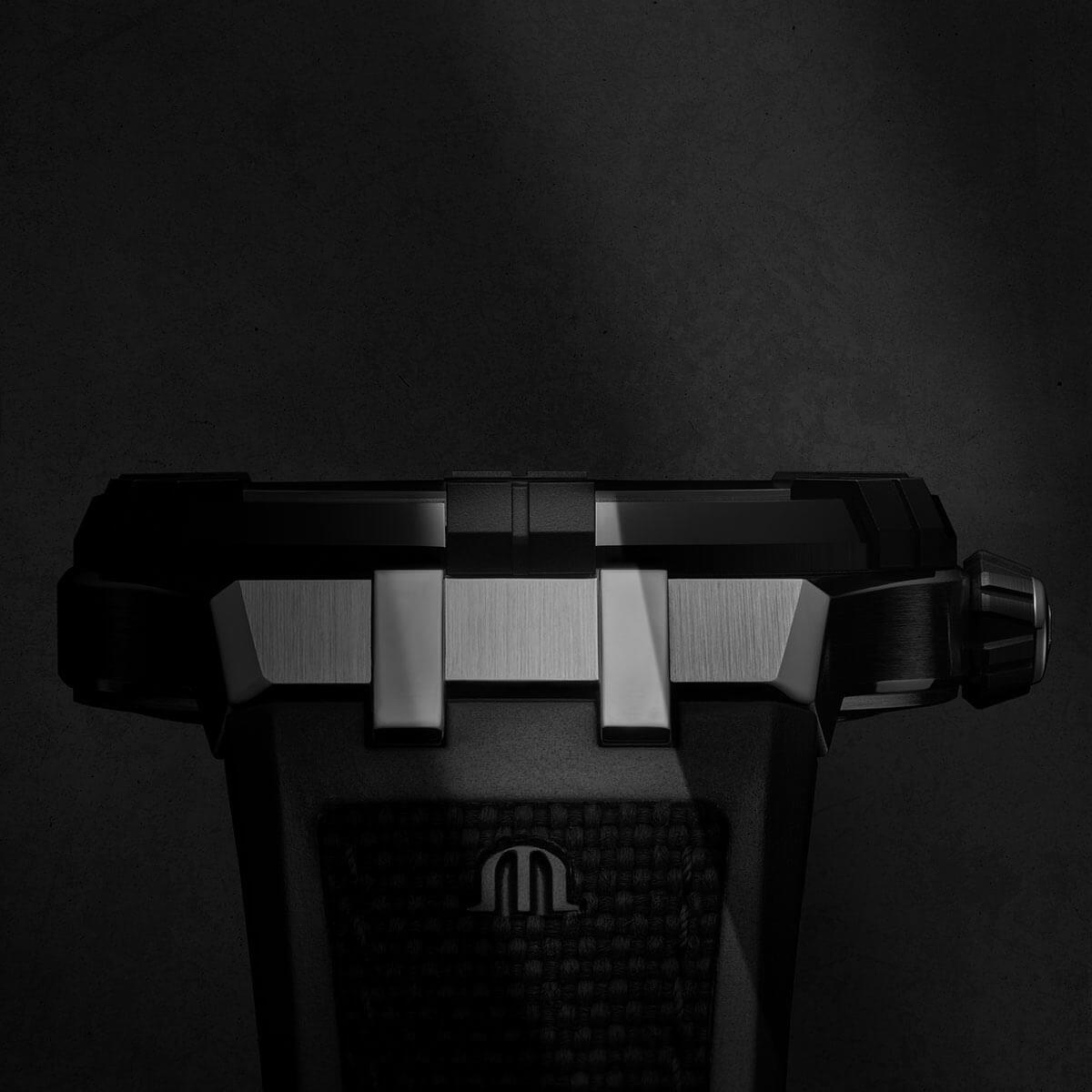 V tomto provedení se setkáváme s pouzdrem z ušlechtilé oceli o průměru 43 mm, které díky keramickému kroužku získává vyšší odolnost proti poškrábání a moderní charakter. Použito bylo safírové sklíčko s antireflexní vrstvou nanesenou z obou stran, což zaručuje perfektní čitelnost za všech podmínek. Šroubovací korunka a průhledné, šroubovací víko dotvářejí obraz konstrukce propracované do posledního detailu s důrazem na dlouhou životnost a spolehlivost. Prezentované hodinky jsou nabízeny na gumovém řemínku v černé barvě – zdobeném logem značky Maurice Lacroix. Díky systému Easy Change System jej lze snadno vyměnit za jiný variant.
