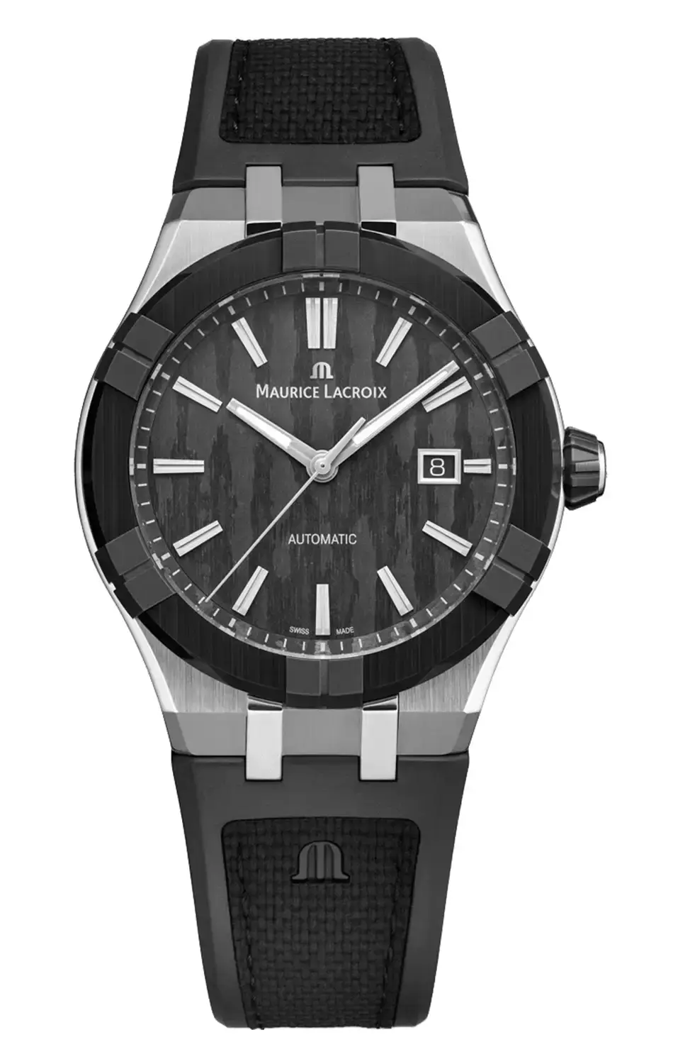 Za pozornost stojí ciferník z uhlíkového vlákna, jehož struktura evokuje svět motoristického sportu a high-tech technologií. Stříbrné indexy a ručičky mu dodávají svěžest a energický akcent, kontrastující s uhlíkovým pozadím. O přesnou práci se stará manufakturní kalibr ML1000 – automatický strojek s 60hodinovou rezervou chodu, který splňuje očekávání náročných uživatelů hledajících hodinky nejen vizuálně působivé, ale také technicky vyspělé. Maurice Lacroix Automatic AC6008-SSL20-330-2 jsou hodinky, které si plně zaslouží označení moderní ikony v kolekci Maurice Lacroix a jsou připraveny doprovázet svého majitele ve všech aspektech každodenního života.