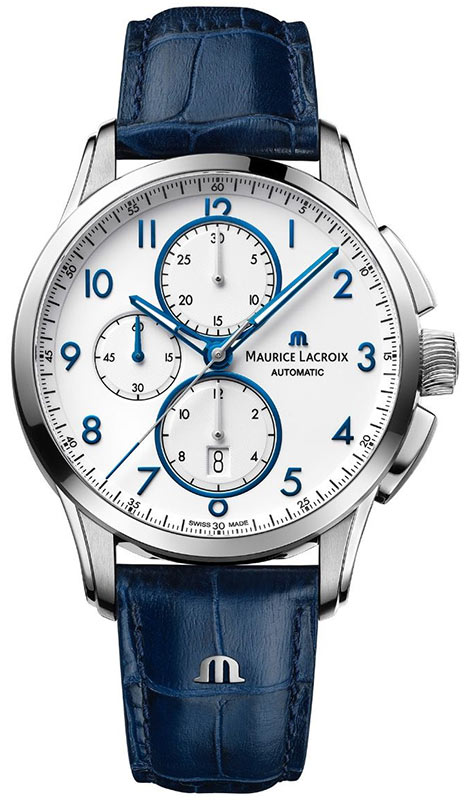 Porcelánově bílý ciferník je chráněn extrémně odolným a průhledným safírovým sklíčkem. Pouzdro o průměru 43 mm je vyrobeno z nerezové oceli s vysokou odolností proti mechanickému poškození. Na zadní straně hodinek je vyrytá rytina 20. výročí kolekce. Luxusní modrý řemínek je vyroben z přírodní telecí kůže a je obohacen o postříbřené logo Maurice Lacroix. Hodinky využívají interní automatický kalibr chronografu ML112, ozdobně zakončený ženevskými pruhy, které jsou viditelné přes čirá safírová záda.