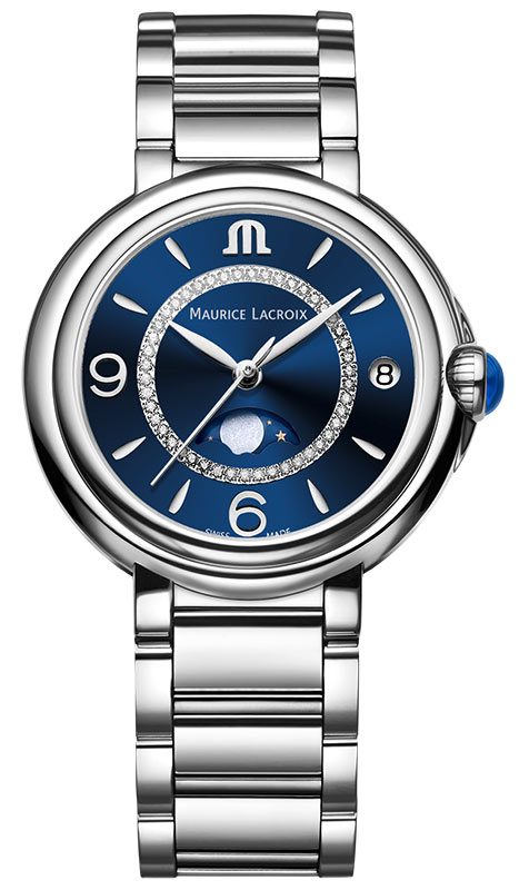 Model je vybaven funkcí fáze měsíce, kterou zobrazuje srpek měsíce umístěný nad 6. hodinou. Podle obecně známé symboliky je Měsíc metaforou života a spojením světla s temnotou se stal i synonymem času. Z tohoto důvodu je tato nabídka o to unikátnější! Maurice Lacroix nabízí tyto hodinky s vysoce přesným quartz Machinekem umístěným v nerezovém pouzdře o průměru 32 mm. Rám je odsazen od pouzdra, aby vytvořil efekt gradace, který okouzlujícím způsobem zachycuje hru světla. Fiaba Moonphase je zavěšena na velmi praktickém náramku z nerezové oceli, který obsahuje skládací sponu, která se otevírá pomocí knoflíků.