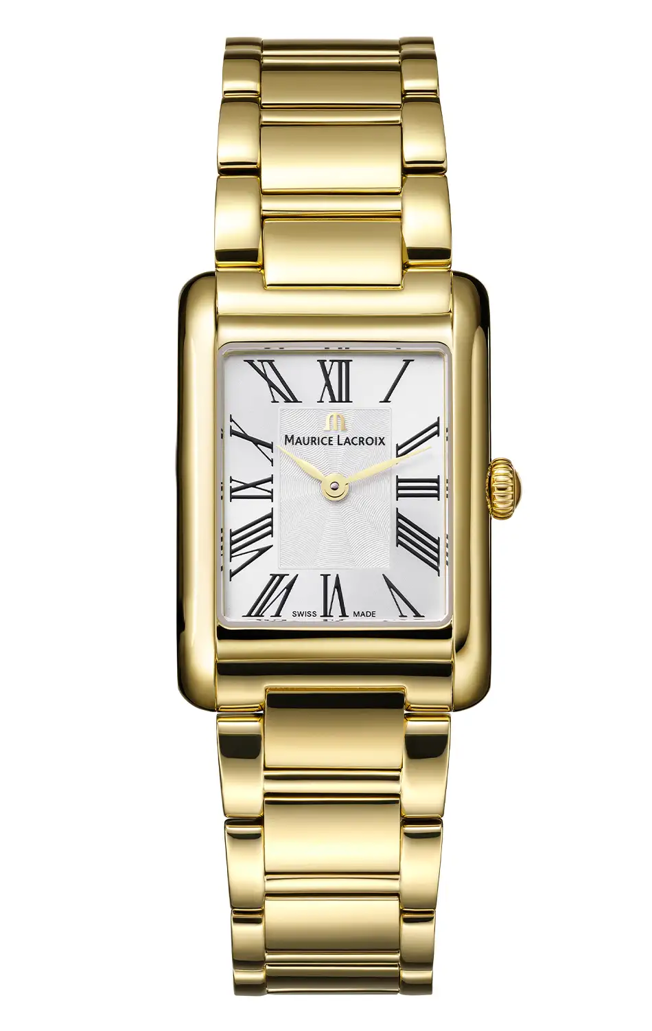 Model s referencí FA1205-PVY02-110-1 z kolekce Fiaba Square doplňuje jednolitý, třířadý náramek ve žlutém zlatě, vyrobený z leštěné a kartáčované ušlechtilé oceli pokryté povlakem PVD 2N. Jeho jednotný vzhled a celoplošné zlaté provedení dodávají hodinkám výjimečný, šperkový výraz. Díky systému rychlé výměny se model snadno přizpůsobí individuálnímu stylu své nositelky. Zlaté dámské hodinky Maurice Lacroix na náramku jsou určeny ženám, které hledají dokonalé spojení elegance a vytříbenosti.