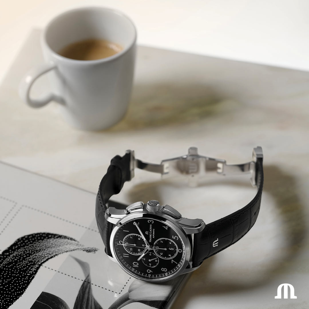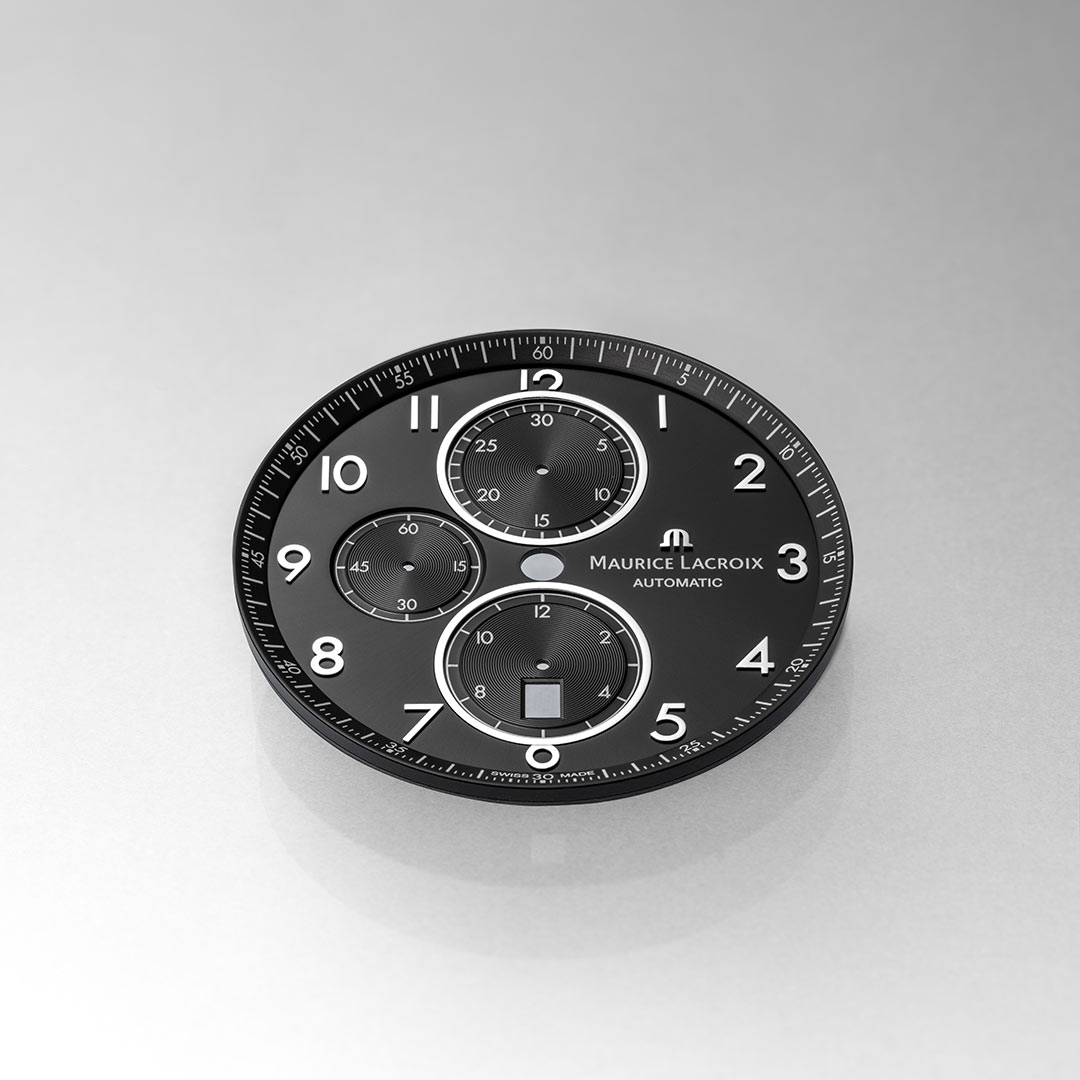 V celé výše uvedené kompozici se designérský tým Maurice Lacroix zaměřil na optimalizaci čitelnosti a umocnění celkového dojmu luxusu. Na límci jsou zobrazeny minuty, na povrchu ciferníku je motiv slunečního paprsku, který si esteticky pohrává se světlem. Subciferník 12hodinového chronografu na 6. hodině obsahuje obdélníkový ukazatel data. Prezentováno na barevně sladěném disku zvyšuje celkový pocit soudržnosti.