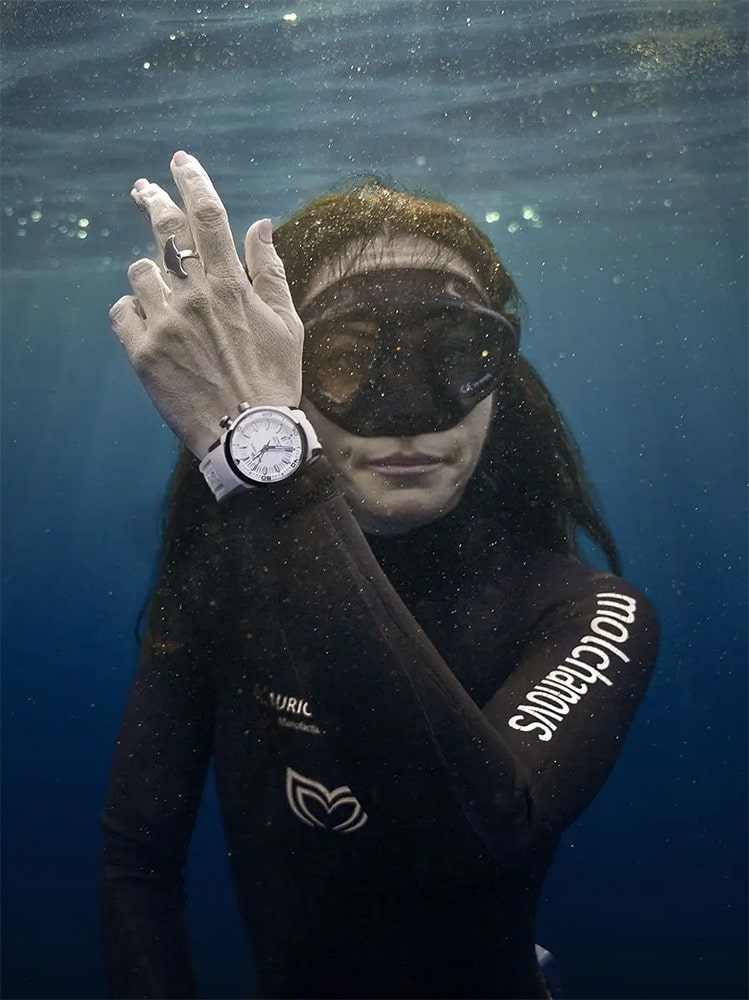 Maurice Lacroix Pontos S Diver PT6248-SS00L-130-4 jsou profesionální diverské hodinky vytvořené ve spolupráci s členkou posádky značky - Lidijou Lijić . Sportovec, který je mistrem světa ve freedivingu a držitelem rekordu za pobyt pod vodou 5 minut a 43 sekund. Lidija žije v realitě, která je plná extrémů a testuje hranice svých schopností. To z ní udělalo perfektní osobu, která by si mohla prohlédnout tyto nově interpretované diverské hodinky Maurice Lacroixe.
