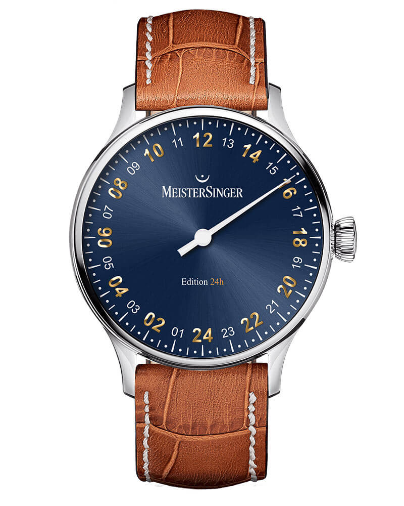 Jednoručičkové hodinky MeisterSinger si již léta získávají srdce těch, kteří v časomíře hledají víc než jen měření hodin. Limitovaný na pouhých 100 kusů po celém světě, pánský model MeisterSinger Edition 24H ED-PM99-24H nabízí zcela jiný pohled na plynutí času – v souladu s přirozeným rytmem dne. Jeho unikátní 24hodinový ciferník v hlubokém odstínu modré s jemným slunečním brusem umožňuje nositeli vnímat den v klidu a harmonii, téměř jako by sledoval pohyb slunce.