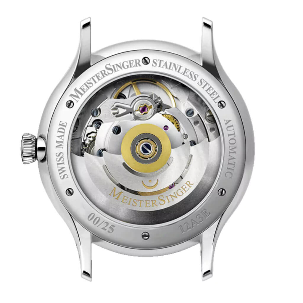 Bílý číselník ve stylu „365“ s jemnou typografií a elegantně tepelně modřenou ručkou vyzařuje klid a třídu. Označení světových stran, nenápadně zakomponovaná do hodinového rozvržení, umožňují využít hodinky i jako kompas. Uvnitř se nachází speciálně upravený automatický strojek SW330 s rezervou chodu 42 hodin – spolehlivý a zhotovený s důrazem na každý detail. Hodinky MeisterSinger Automatic Limited Edition ED-PM99-24HE jsou dílem pro sběratele, kteří hledají víc než pouhé měření času – je to předmět, který vypráví o životní filozofii.