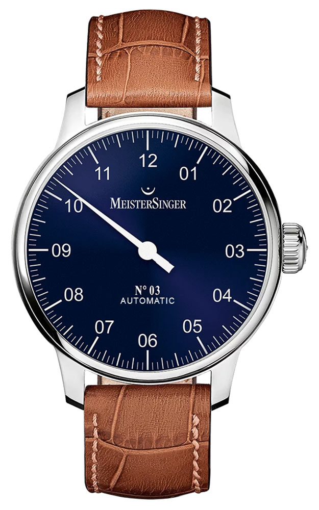 Pánské hodinky MeisterSinger No.03 jsou klasické a nadčasové hodinky. Charakteristická jednoručka měří plynutí času velmi originálním způsobem. Dobře čitelný číselník rozdělený do 5minutových intervalů. Mírně kulovité průhledné safírové sklíčko zajistí povrch bez škrábanců. Pouzdro s jemnými hranami z nerezové oceli, jemně leštěné. Pánské hodinky Meistersinger No.03 jsou vybaveny přesným automatickým samonatahovacím Machinekem ETA 2824-2 / Sellita SW200-1 . Hodinky jsou nabízeny na světle hnědém koženém řemínku, jemně propíchnutém nití. Originální, osobitá nabídka hodinek pro moderního muže, který má rád inovativní nápady.