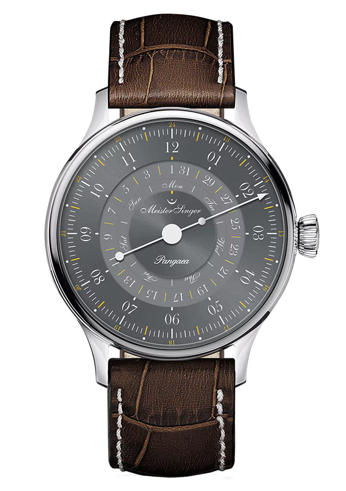 Pánské hodinky MeisterSinger Pangaea Day Date 365 PDD365927. Velké historické události zastíní jednotlivé konkrétní dny, které nutí ustoupit do pozadí. Příkladem je přistání na Měsíci, které proběhlo v konkrétní den týdne, jako je úterý nebo čtvrtek. Pamatuje si někdo z nás, který den v týdnu to tehdy byl? V našem životě jsou však dny pravděpodobně důležitější. Třeba když si v pátek vzpomeneme na zmeškanou čtvrteční návštěvu u zubaře. Pánské hodinky MeisterSinger se zaměřují právě na ty opravdu nejdůležitější okamžiky — na hodiny a dny, které se zapisují do naší paměti. Pomůže nám v tom hodinky MeisterSinger Pangaea Day Date, které jsou vybaveny datumovkou a ukazatelem dnů v týdnu.