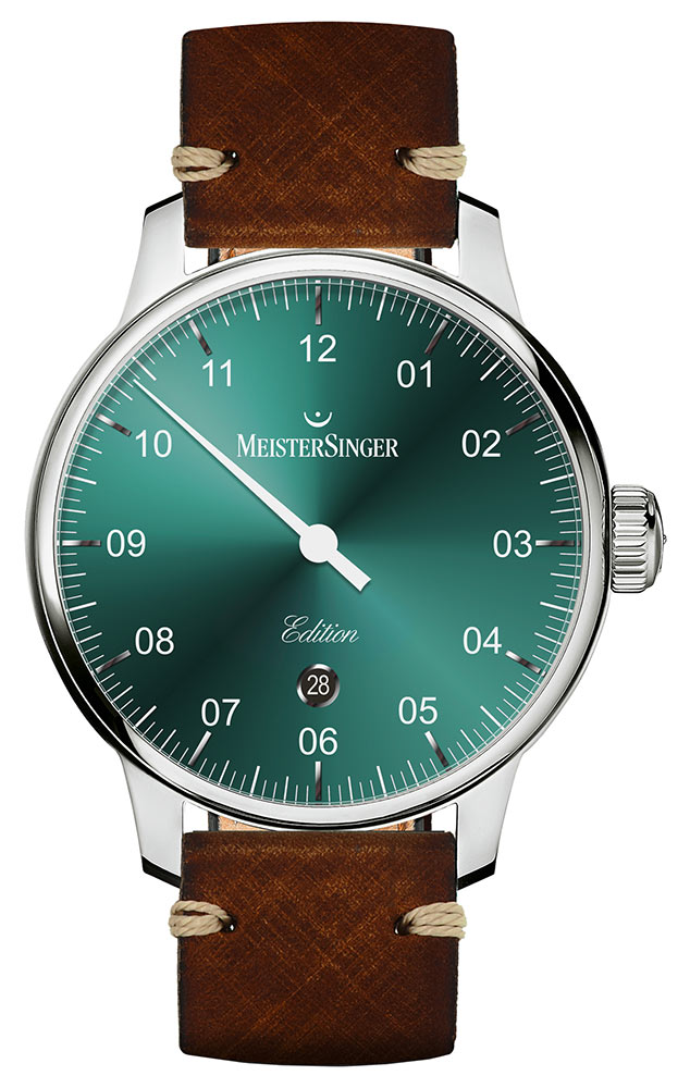 Ciferník výše uvedené edice MeisterSinger pro Polsko připomíná tmavě zelené opály a navozuje příjemné i uklidňující pocity. Stříbrné značky hodin dokonale odpovídají jejímu obrazu. Čísla a ručičky jsou bílé, jasně, ale nenápadně kontrastují na chladném zeleném pozadí. Minimalistické datumové okno zobrazuje den v bílé barvě na černém pozadí. Celý je uložen pod prakticky odolným safírovým sklíčkem. Tyto elegantní pánské automatické hodinky jsou umístěny v pouzdru z leštěné nerezové oceli s nadměrným průměrem 43 mm.