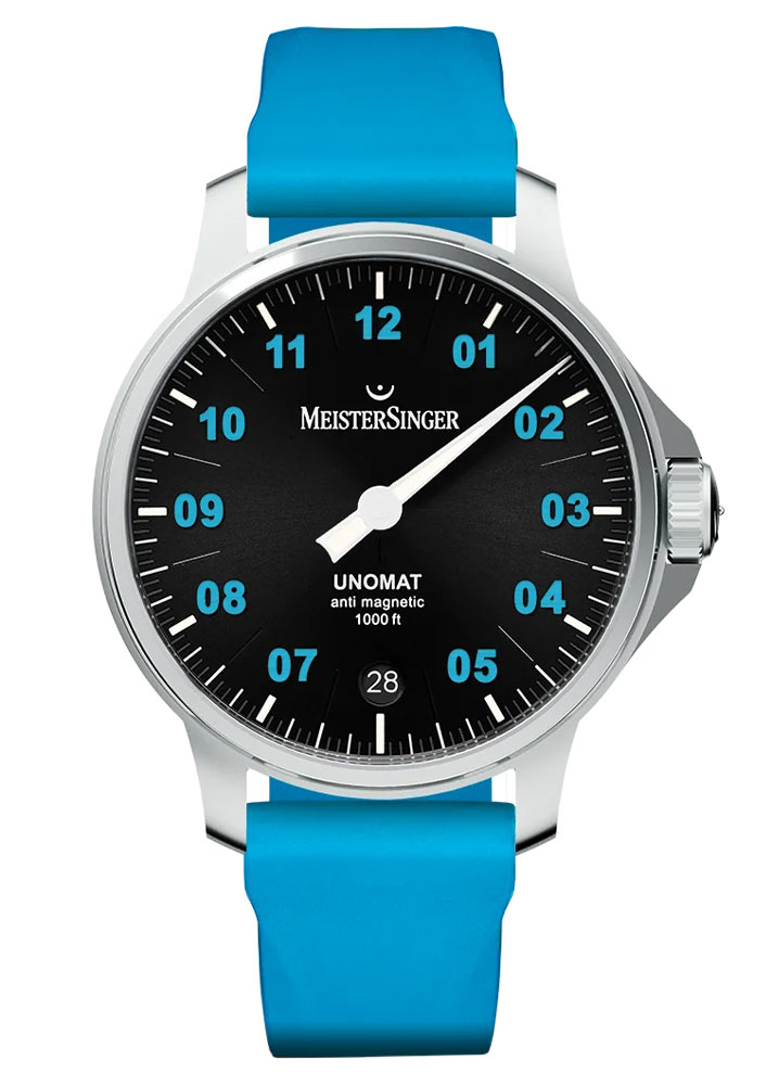 MeisterSinger Unomat UN902BLU jsou jedinečné hodinky, do kterých je vštípena technická a kulturní tradice raného hodinářství, stejně jako moderní řešení, která poskytují spokojenost v každém oboru. Jeho vzhled má být spojen s vědeckým a vodním přístrojem sloužícím k měření času, což je unikátní vlastnost všech děl německého výrobce MeisterSinger. Způsob, jakým hodinky udávají čas, je extrémně efektivní. Unomat má široký jehlový ukazatel, který jasně svítí díky luminiscenčnímu povlaku, který se také nachází na arabských indexech.