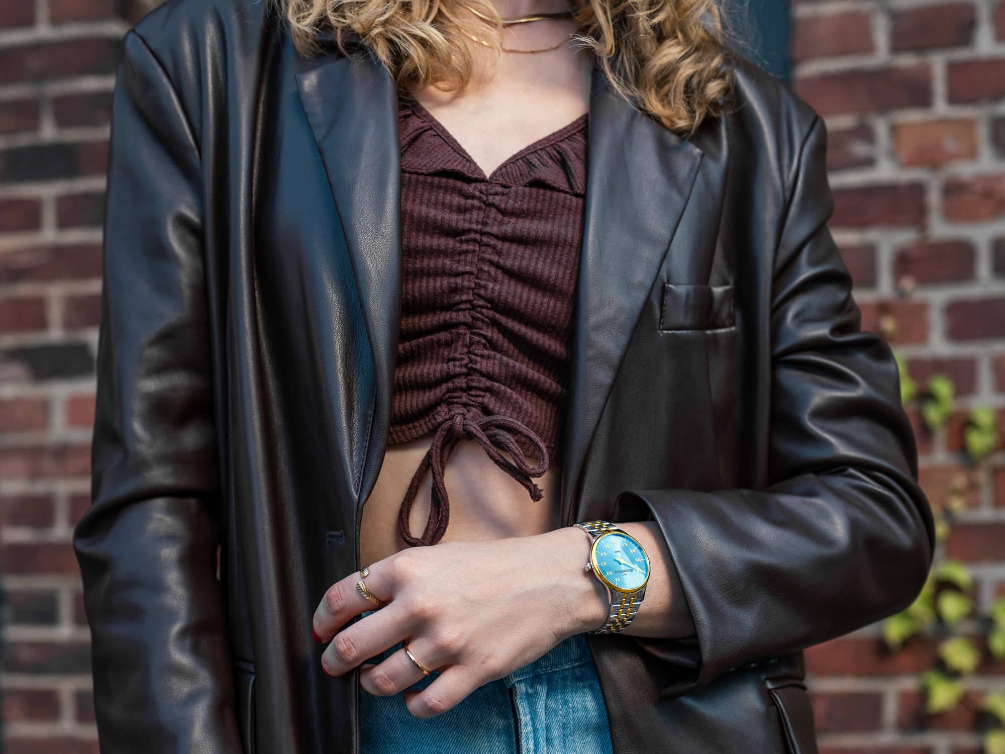 Arabské indexy na světle modrém ciferníku v kombinaci s elegantní hodinovou ručičkou dodávají hodinkám jedinečný lesk a vytříbený charakter. Jemné fixy každých 5 minut, decentně umístěné podél okraje ciferníku, diskrétně splývají s pozadím a ještě více zdůrazňují jeho průhlednost. Ciferník je zasazen do 36mm pouzdra s pozlacenou lunetou, vyrobené z kvalitní nerezové oceli. Tenké pouzdro je kombinováno s pětiřadým bicolor náramkem, zakončeným bezpečnou motýlkovou sponou. Celé to chrání extrémně odolné safírové sklo odolné proti poškrábání, které zajišťuje dlouhou životnost a bezchybnou estetiku.