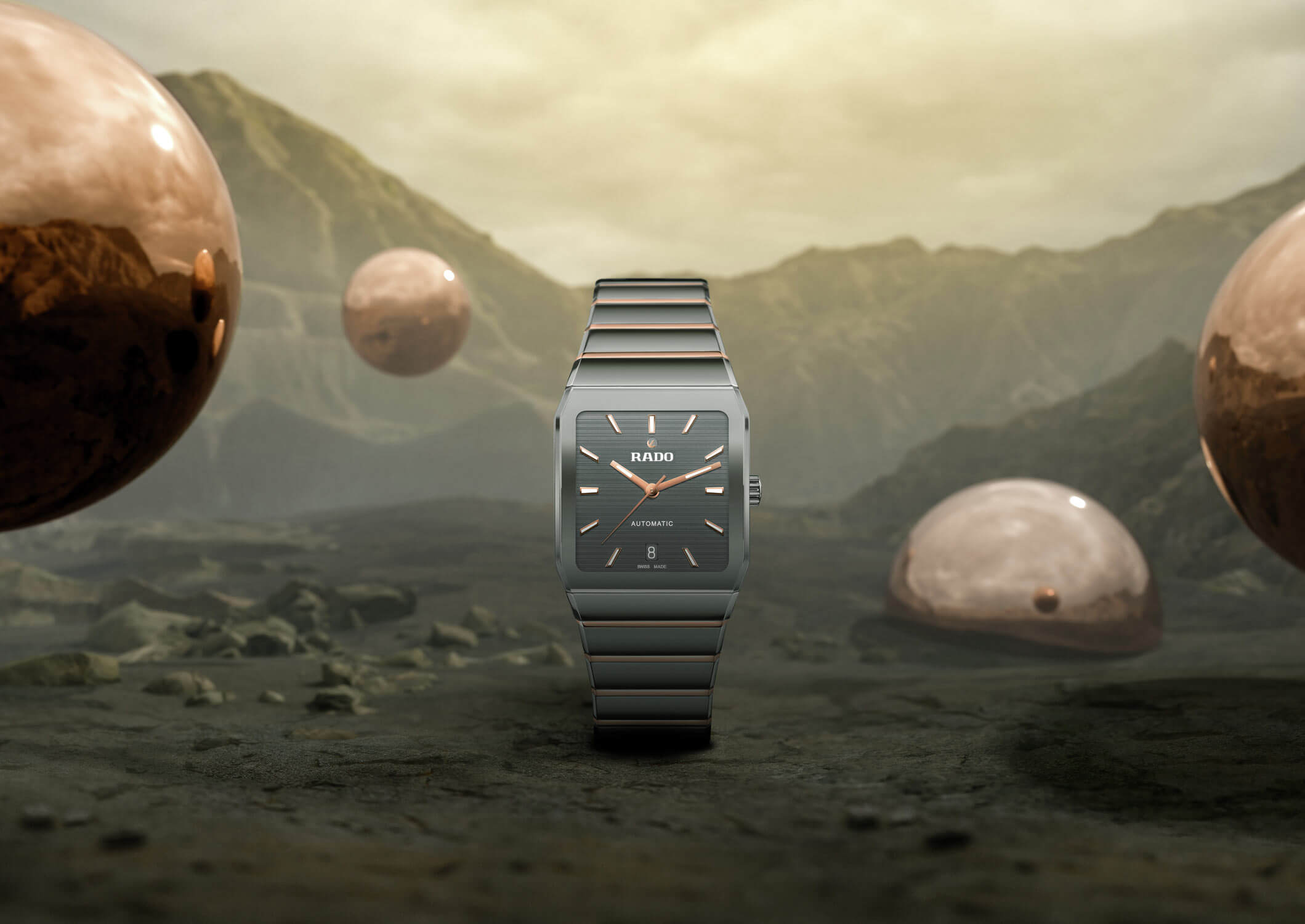 Rado je značka známá především průkopnickým využitím high-tech keramiky a automatické hodinky Rado Anatom do této tradice dokonale zapadají a zároveň reinterpretují atmosféru 60. let. Osvěžená verze modelu Anatom zaujme obálkou o rozměrech 32.5 x 46.3 x 11.3 mm, která oproti originálu využívá moderní vylepšení. Pouzdro z matně šedé high-tech plazmové keramiky dodává hodinkám nejen moderní vzhled, ale také mimořádnou odolnost. Korunka, vhodně umístěná na pravé straně a nese ikonické logo kotvy Rado, dodává těmto hodinkám jemnou eleganci a funkčnost. Šedý náramek z plazmové keramiky je dalším prvkem, který tento model odlišuje. Jeho úzké články jsou vyrobeny z nerezové oceli a potaženy růžovo-zlatým PVD povlakem. Jemný a na dotek příjemný náramek je opatřen bezpečnou motýlkovou sponou.