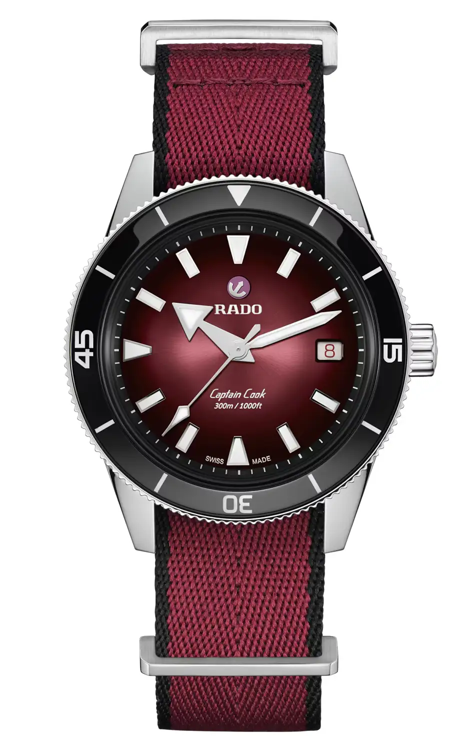 Gradientní číselník Rado přechází od černé po hlubokou červenou a vytváří dojem hloubky, která se mění podle úhlu dopadu světla. Rhodiované ručky a indexy jsou potaženy hmotou Super-LumiNova®, zajišťující čitelnost i pod vodou, a ikonická kotva Rado umístěná na rubínové destičce dodává projektu prestiž a identitu značky. Uvnitř pracuje automatický strojek Rado R763 s antimagnetickou pružinou Nivachron™, regulací v pěti polohách a působivou 80hodinovou rezervou chodu – navržený pro nekompromisní přesnost. Tento časoměřič nemusí nic dokazovat – byl vytvořen pro ty, kteří vědí, co chtějí. Potápěčské hodinky Rado Diver R32223408 na náramku nejsou jen nástrojem k měření času – jsou vyjádřením nezávislosti, stylu a připravenosti na cokoli.