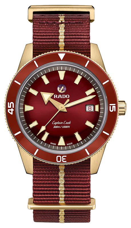 Nová série Captain Cook Bronze je součástí vzrušující kolekce Captain Cook pojmenované po slavném anglickém mořeplavci a průzkumníkovi, kartografovi a astronomovi Captainu Cookovi, která zahrnuje hodinky inspirované originálními produkty Rado z 50. a 60. let 20. století. Bronz je krásný a oko- poutavý materiál, který je obzvláště atraktivní v kombinaci se zelenými, modrými a hnědými akcenty na hodinkách Captain Cook.