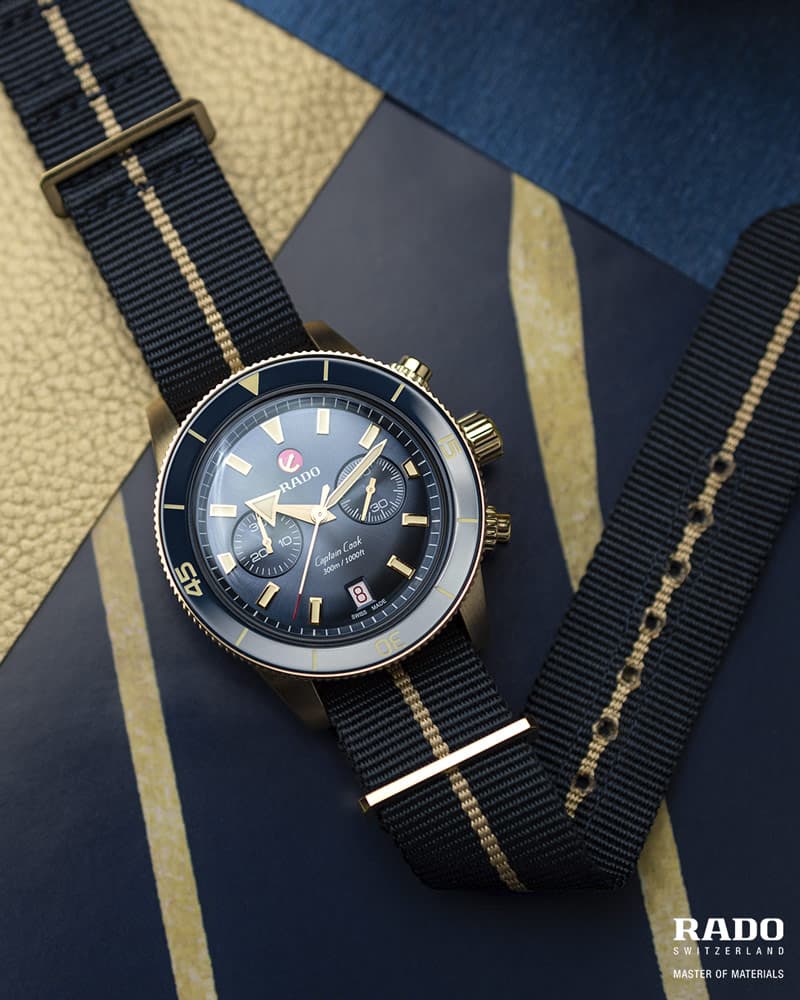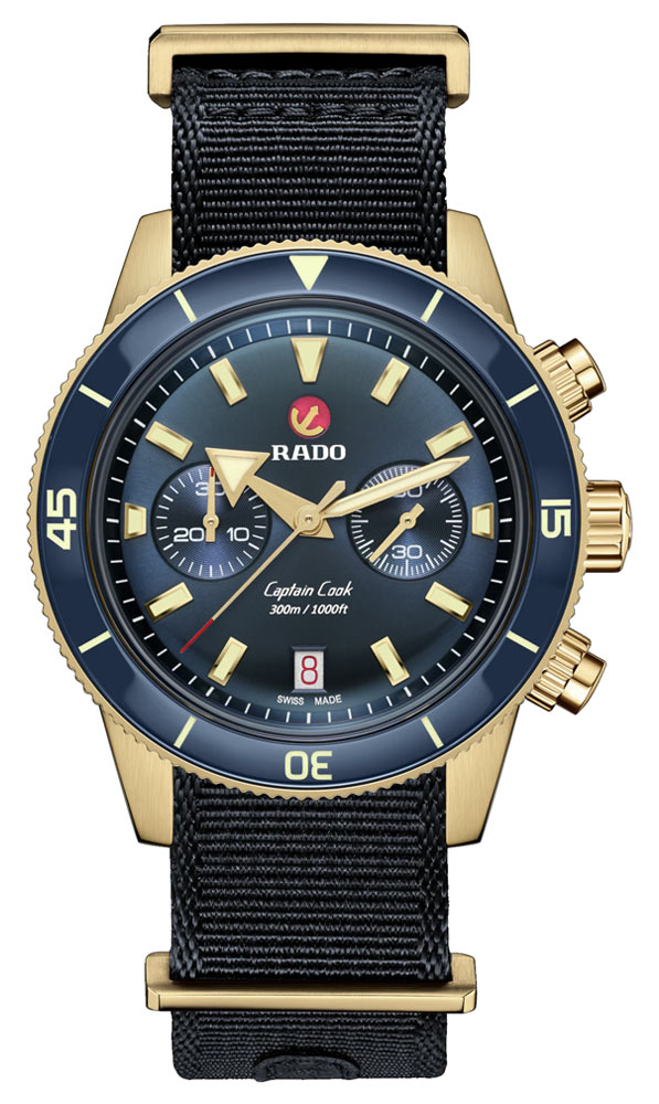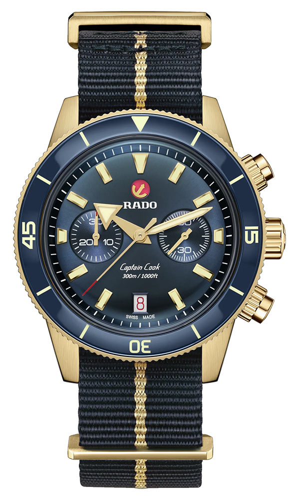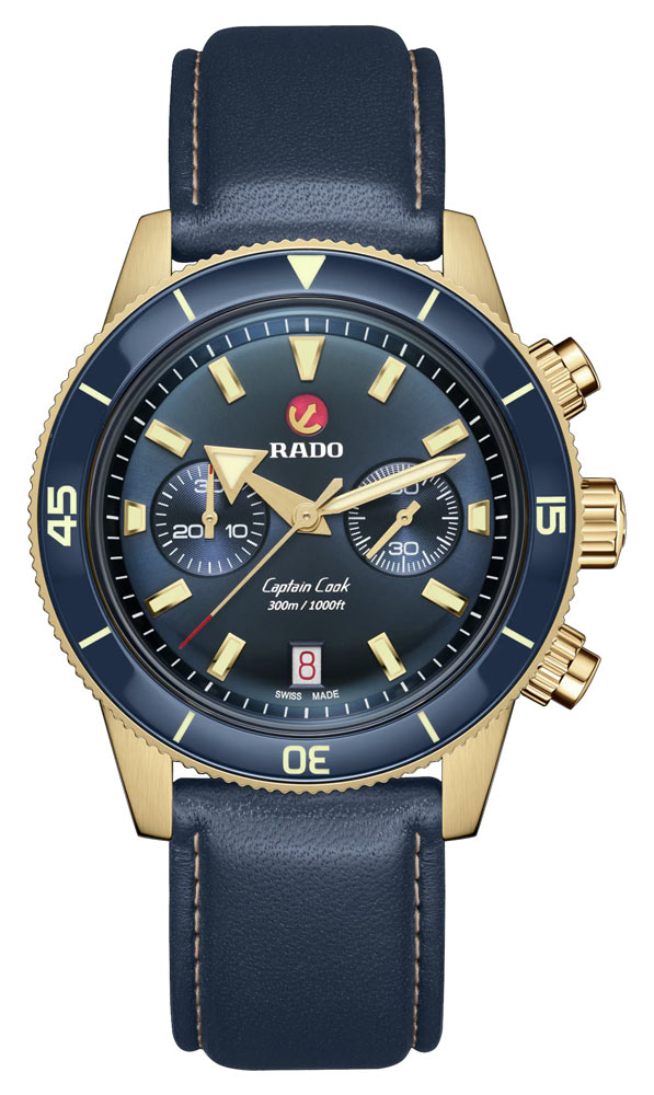 Captain Cook Chronograph je Radův první chronograf pro průzkumníky a přináší kapitána Cooka zpět v dokonalých proporcích s jedinečným štíhlejším automatickým Machinekem, který je v terénu velmi vzácný. Dnes, v době, kdy máme k dispozici široký výběr, splňuje očekávání „Master of Materials“ Rado také ne jednou, ale hned třemi variantami svých nejnovějších hodinek s chronografem, v různých barvách a konfiguracích pásků/náramků, které jistě uspokojí i ty nejnáročnější milovníky.