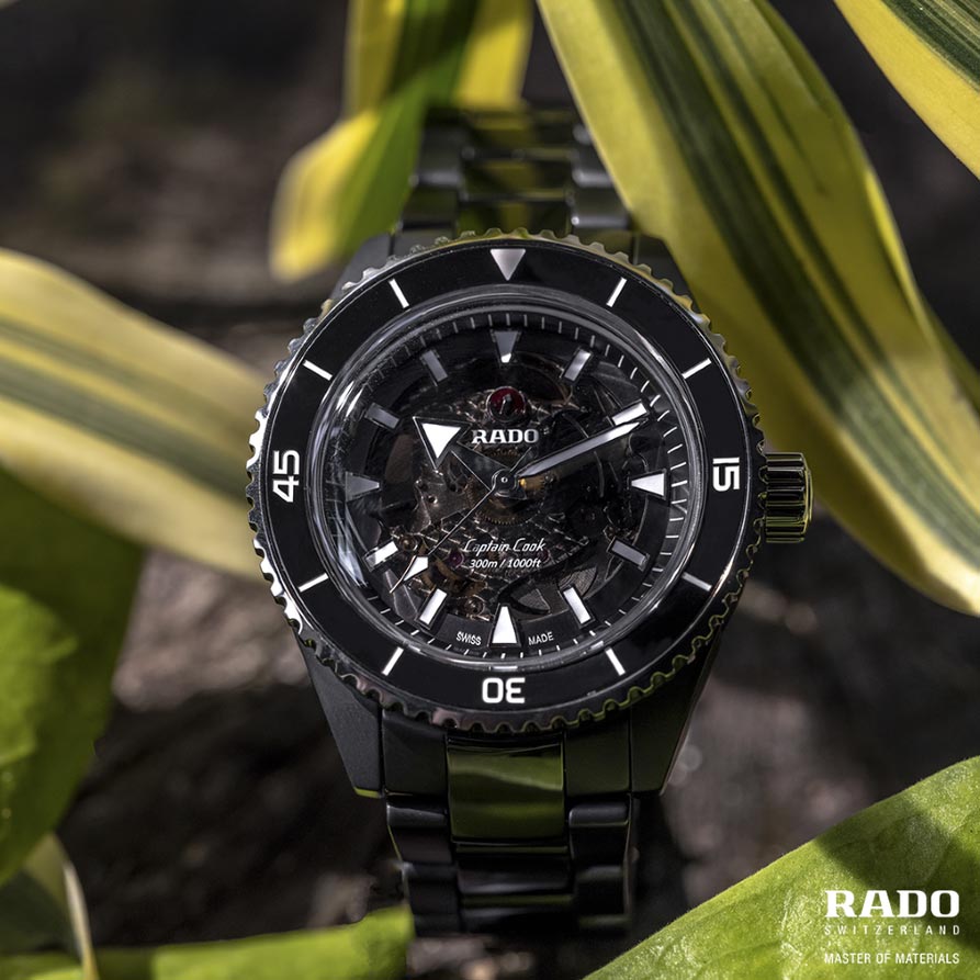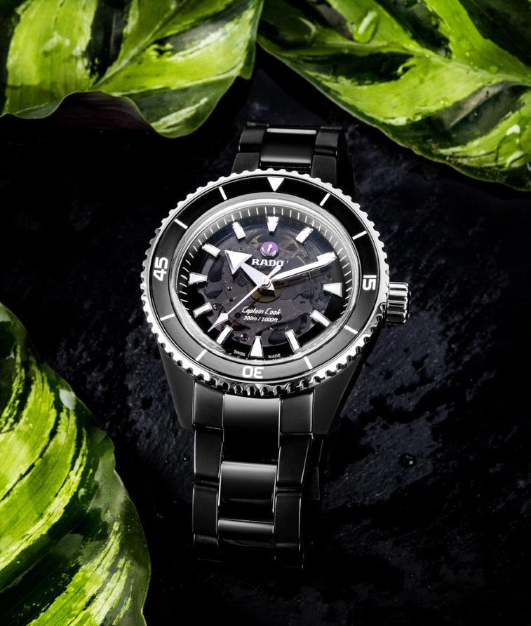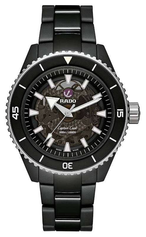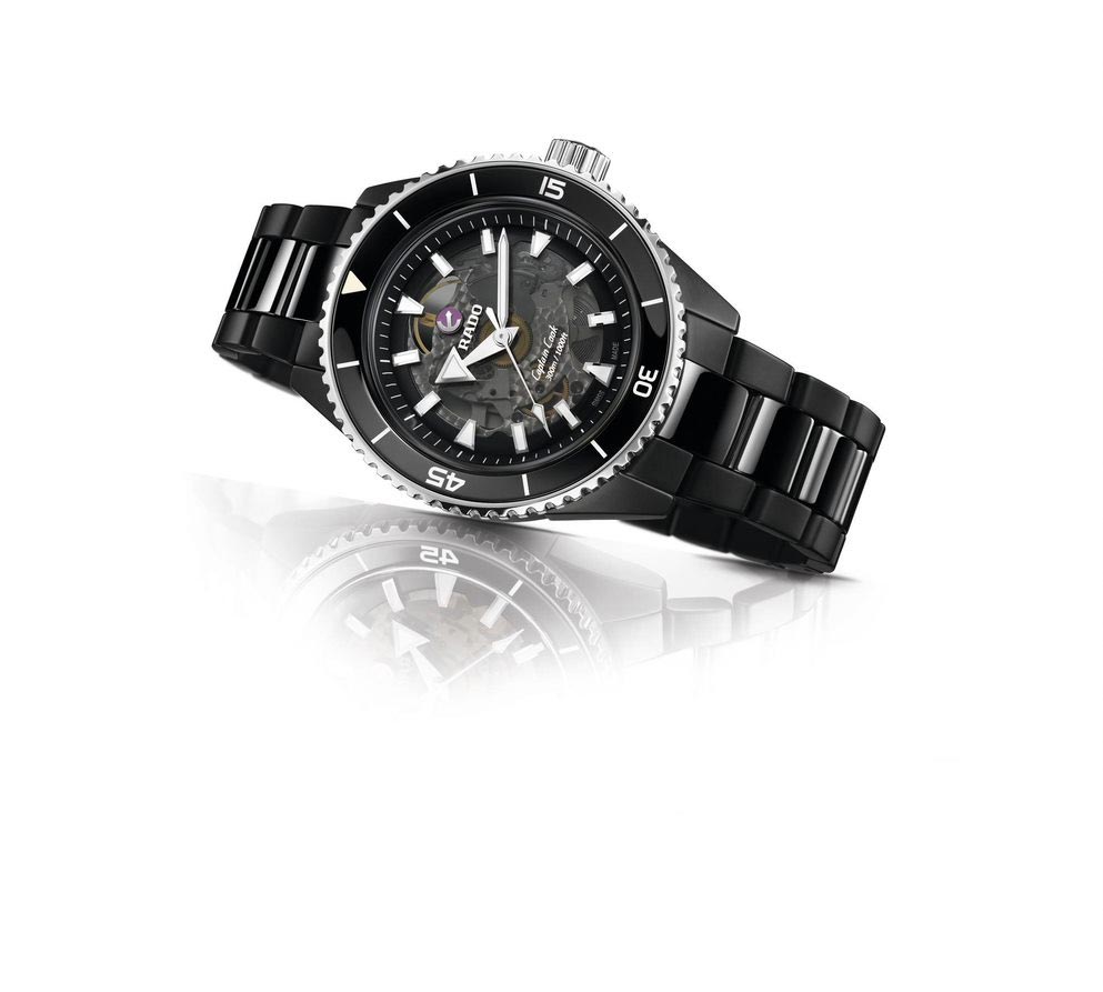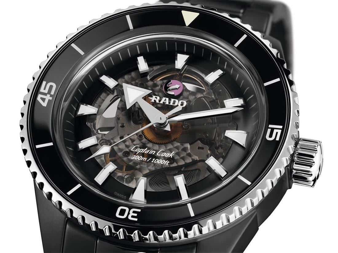 Rado Captain Cook High-Tech Ceramic R32127152 se vyznačuje jedním z nejušlechtilejších počinů značky - inovativní a technologicky vyspělou konstrukcí keramického monoblokového pouzdra, nepoškrábatelné, hypoalergenní a na dotek příjemné high-tech keramiky. jako prémiový mechanismus s inovativním, chránícím hodinky před magnetickým polem pomocí vlásenky Nivachron™. Uživatel má možnost obdivovat jeho práci jak díky skeletovému ciferníku, tak zadní části pouzdra ze safírového skla, které je voděodolné do cca 300 m.