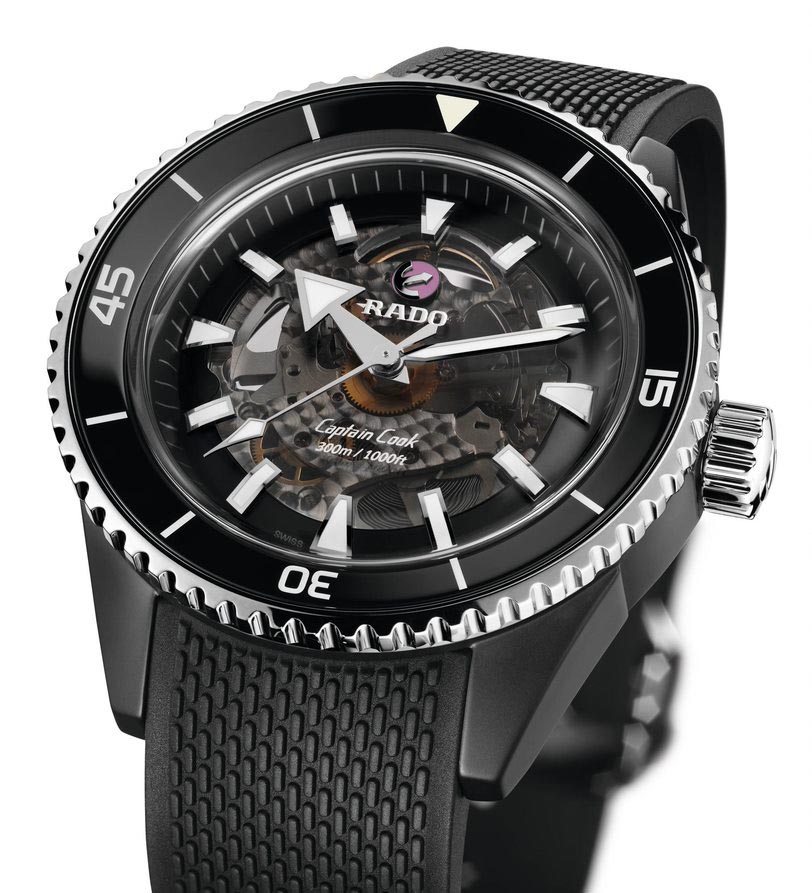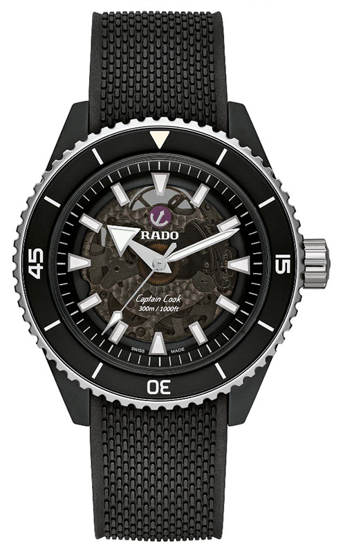 Rado Captain Cook High-Tech Ceramic R32127156 se vyznačuje jedním z nejušlechtilejších úspěchů značky - inovativní a technologicky vyspělou keramickou konstrukcí, tedy nepoškrábatelným a hypoalergenním monoblokovým pouzdrem, a také prémiovým mechanismem s inovativní ochranou vlasové pružiny. hodinky proti magnetickým polím Nivachron™. Uživatel má možnost obdivovat jeho práci jak díky skeletovému ciferníku, tak zadní části pouzdra ze safírového skla, které je voděodolné do cca 300 m.